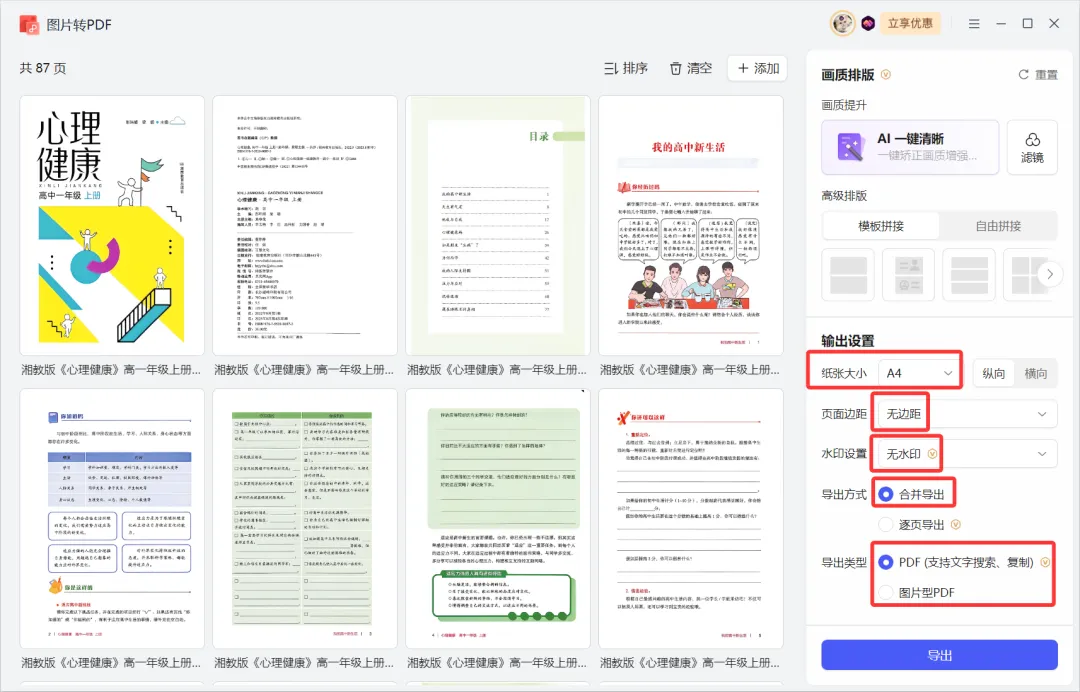 图文处理:WPS office的“图片合并PDF文档”(无水印合并文档需会员)和“裁剪页面”(无需会员)功能。