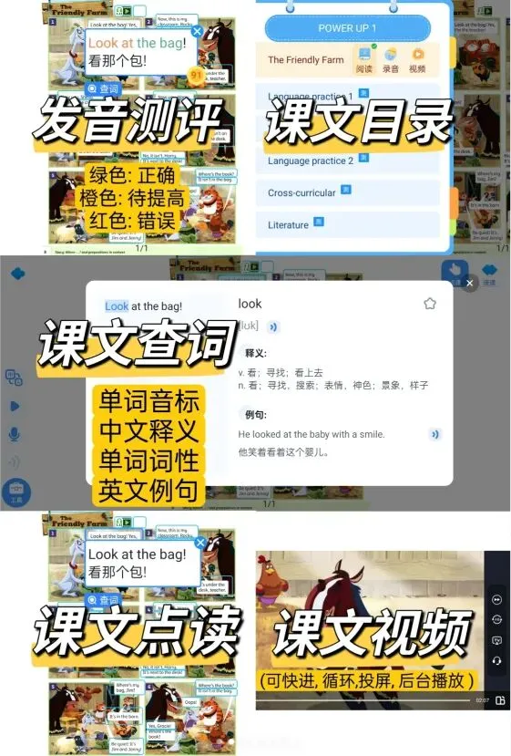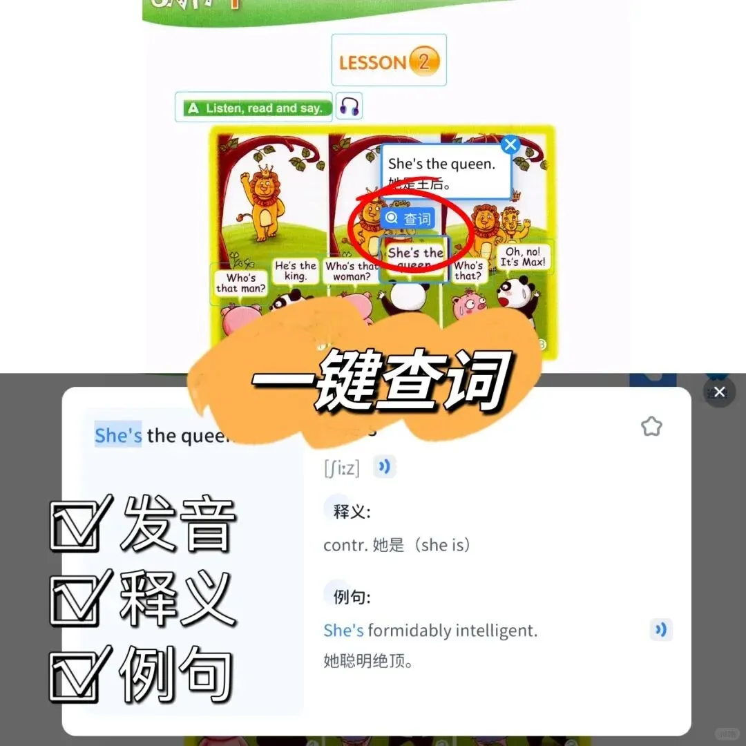 – 透明对照,理解透彻: 电子课本都配有清晰的中文翻译,帮助孩子精准核对理解是否正确。这避免了孩子因猜错意思而形成的错误记忆。、