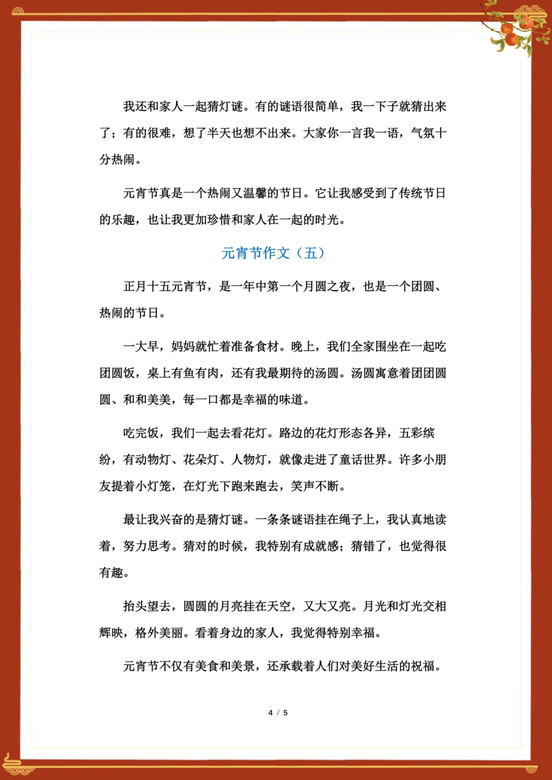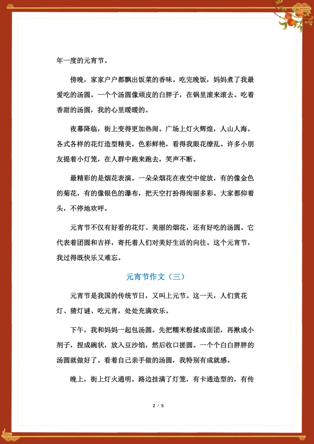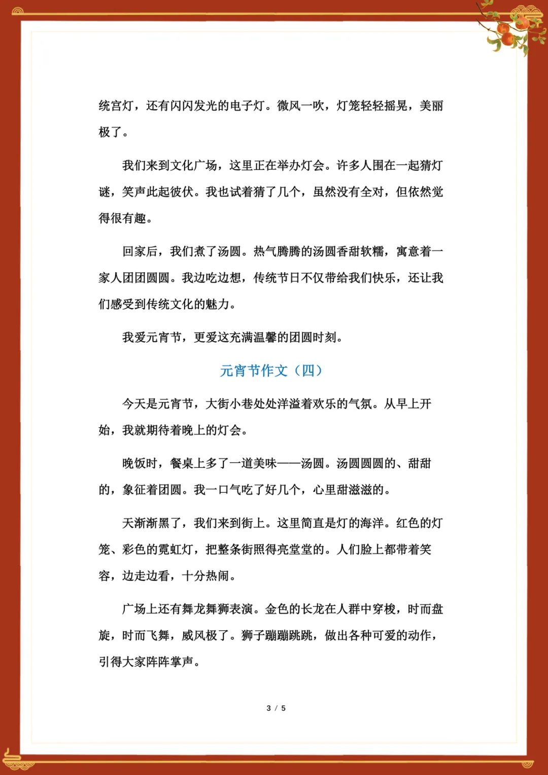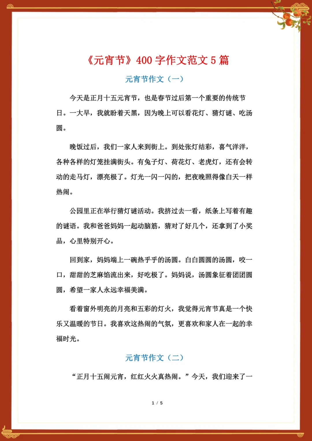 《元宵节》400字作文范文5篇 电子版可下载