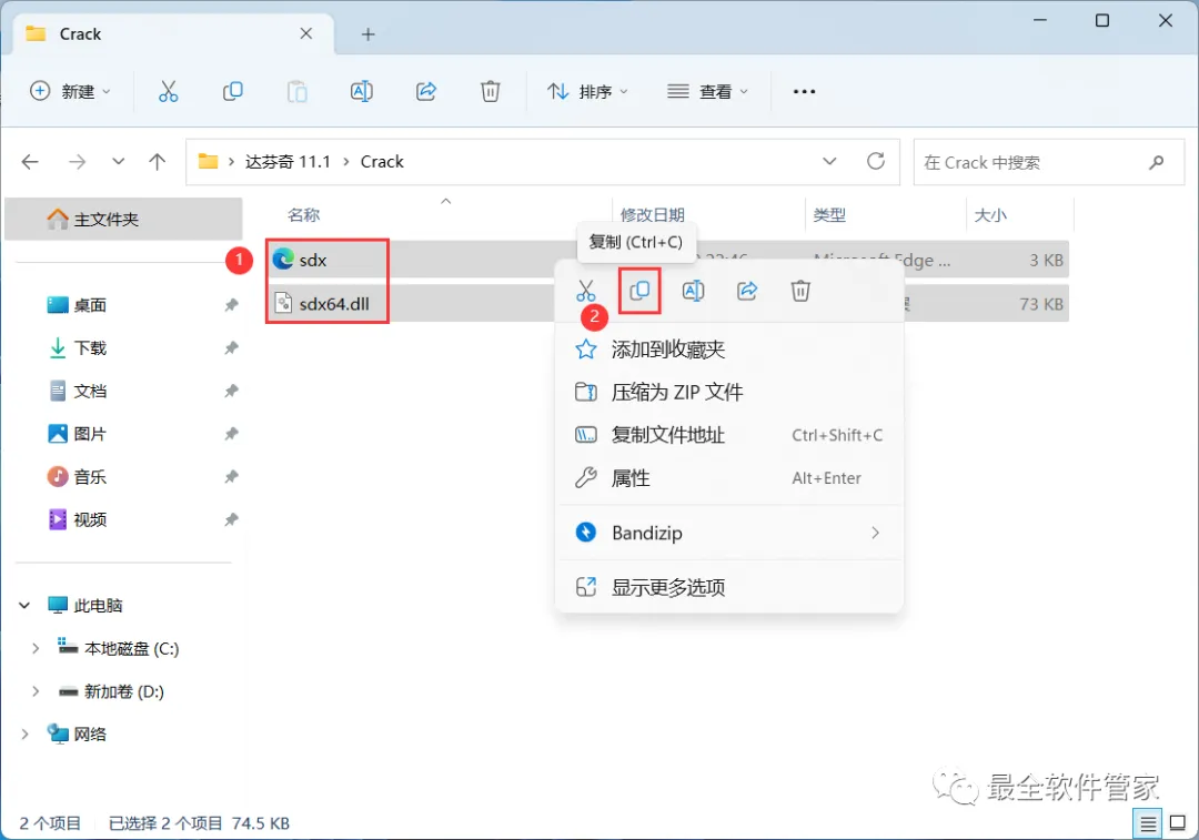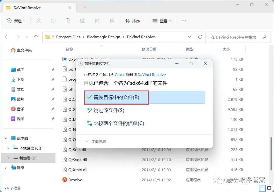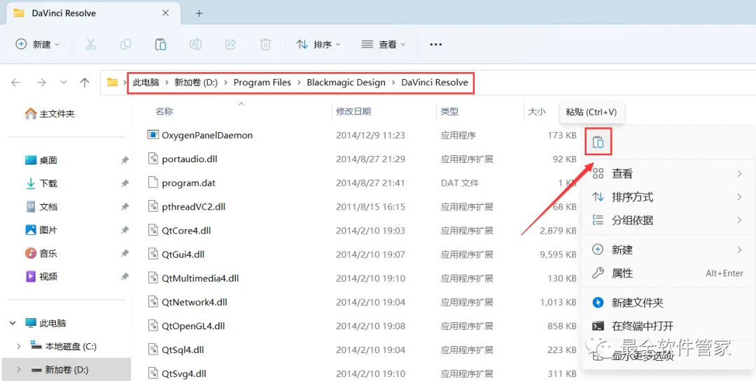 17、回到达芬奇 11.1文件夹,找到【Crack】文件夹,右键【打开】它