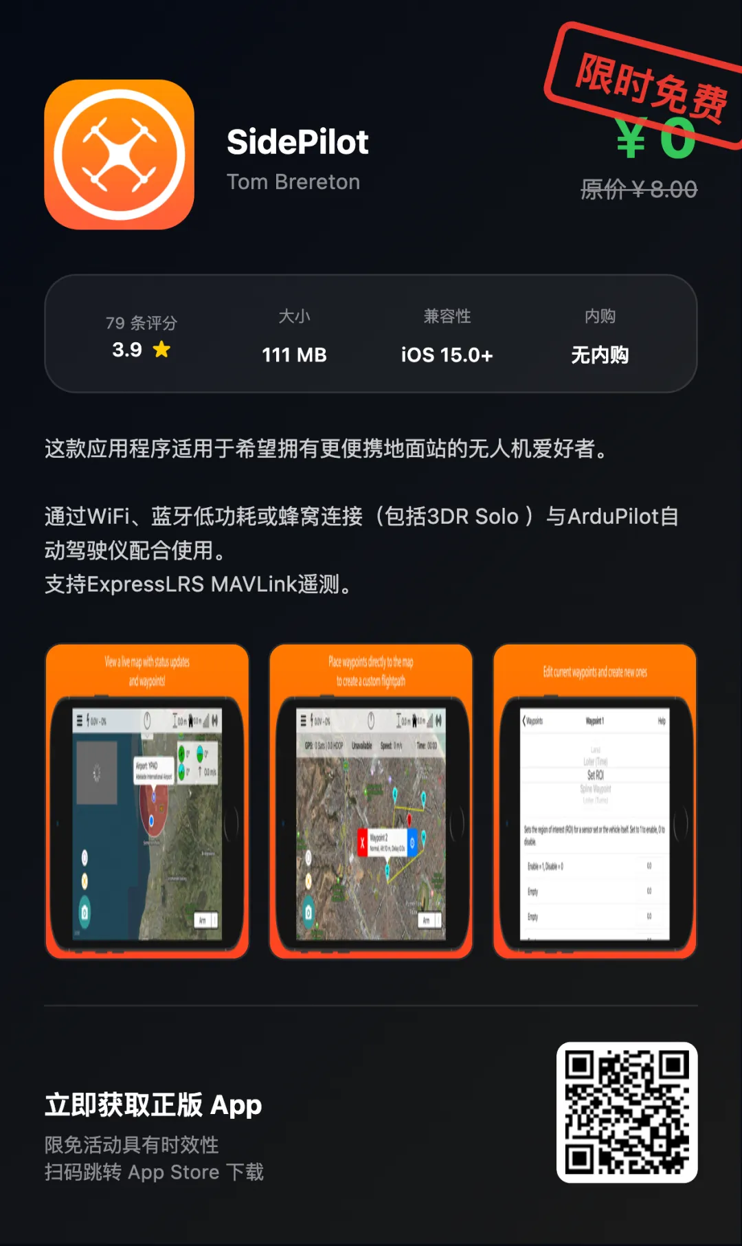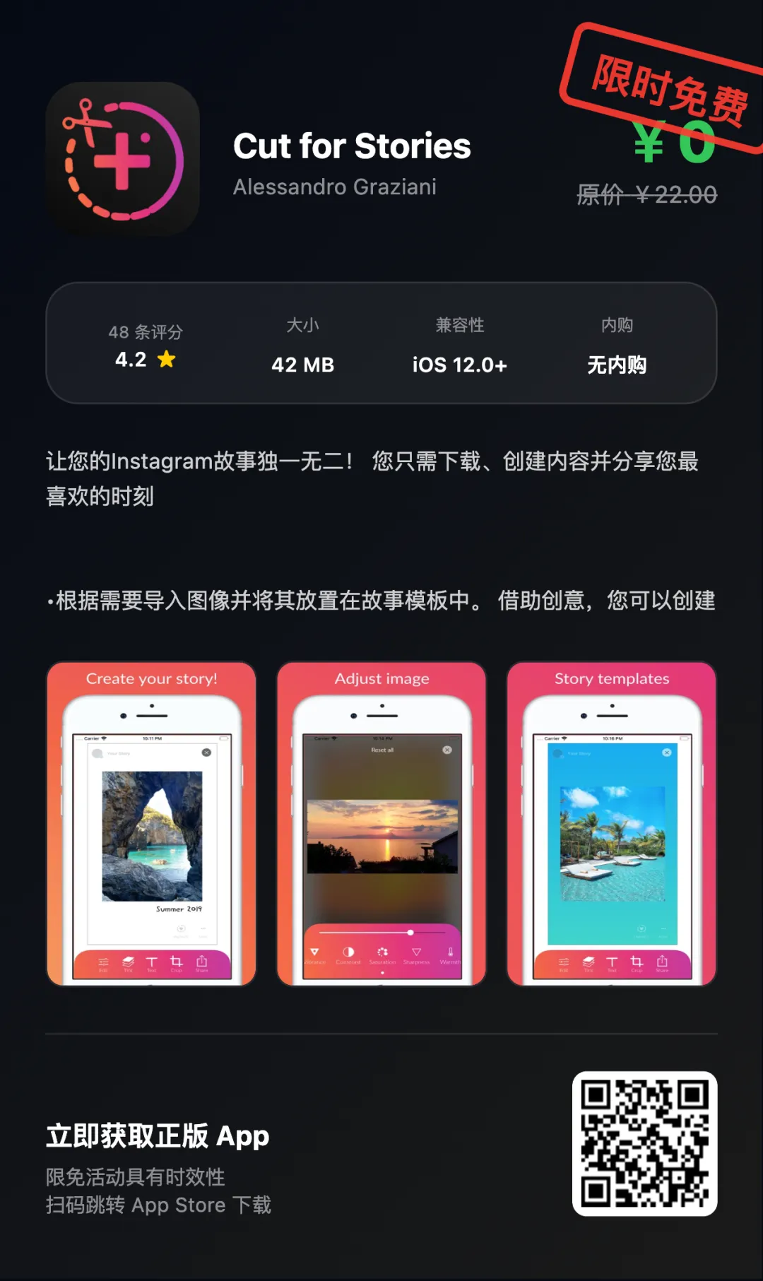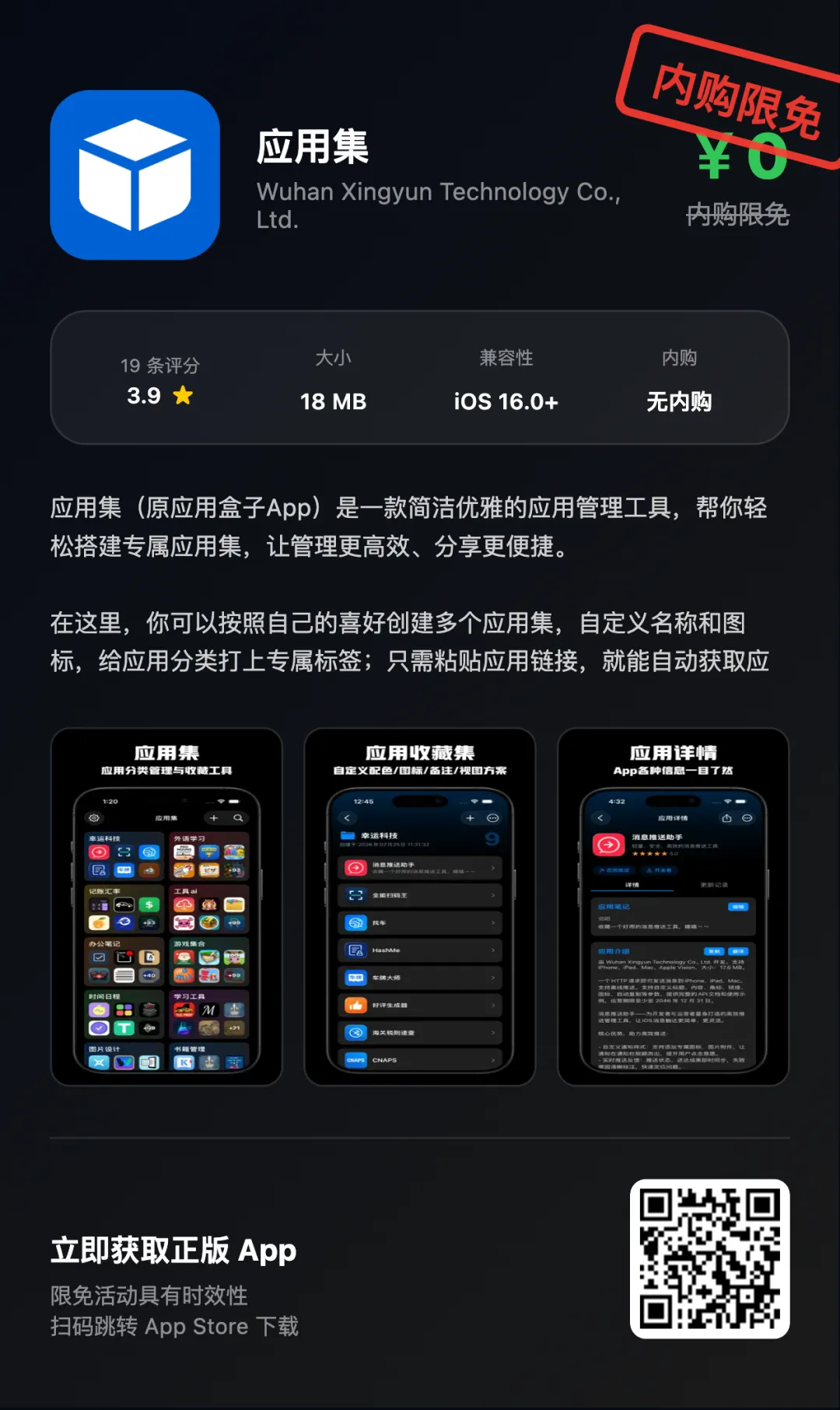 “App Store限免优惠或推荐精品应用,一旦下载,账号再次下载即永久免费!如果收费则为限免结束!!下载前请仔细核对应用或游戏价格,实际价格以App Store页面为准”