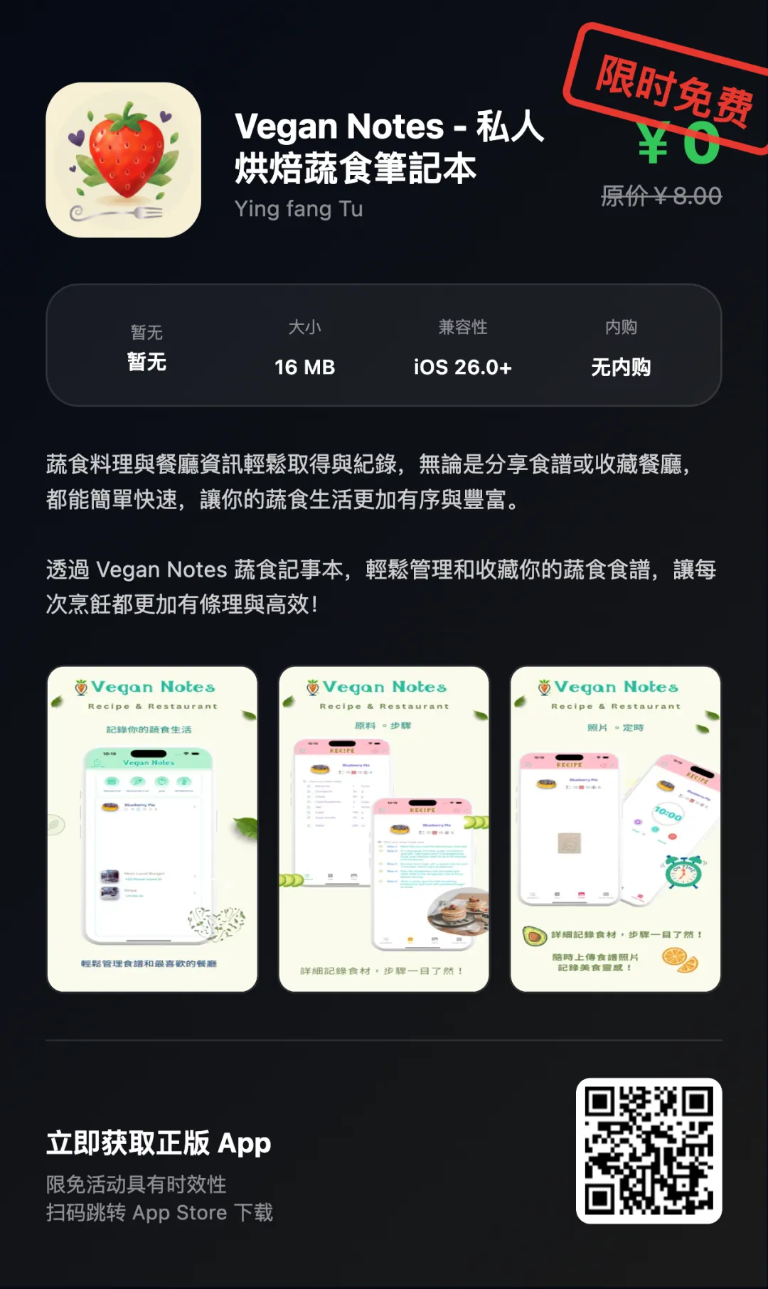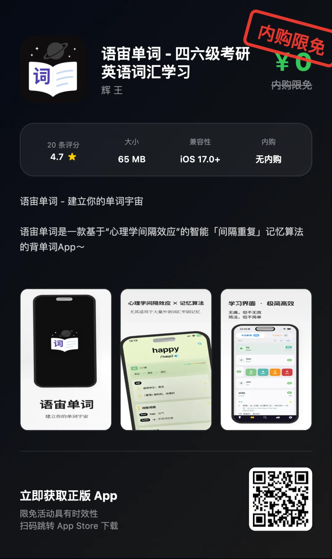 本次限免为限时活动,具体结束时间以App Store为准