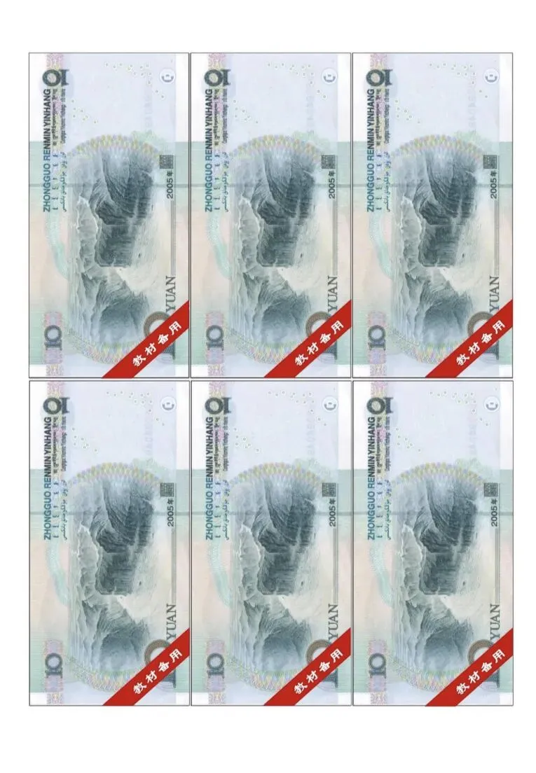 一下人民币专项教具,认识钱币,高清图片可打印