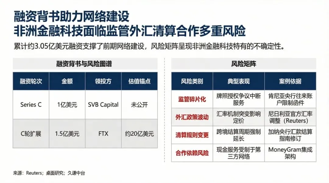 累计约3.05亿美元的融资为Chipper Cash前期的网络建设提供了充足弹药。但其面临的风险也同样清晰:监管碎片化可能导致服务中断;外汇政策波动直接影响定价和利润;清算规则的变更会延长结算周期;对合作伙伴的高度依赖也带来了潜在的运营风险。