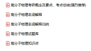 今天分享的资料是「1188-高分子物理」电子版+学习笔记+知识点总结+期末考试重点+复习资料+习题集及答案+名词解释+历年真题试卷及答案+题库及答案+复习重点+思考题及参考答案+公式总结+考试重点基础题+知识总结+高清PDF可打印+免费分享!