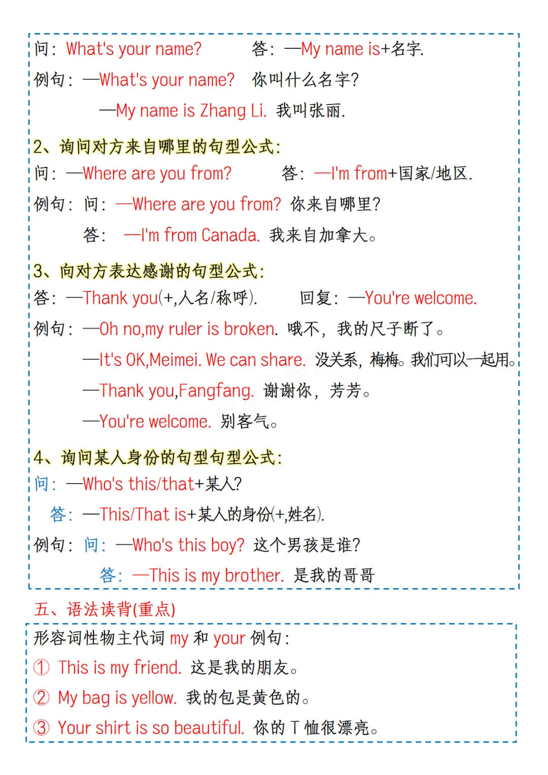 三年级(下)英语 1-6单元知识点《人教版PEP》