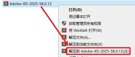 1.选中下载的AdobeXD安装包,右键选择“解压到 AdobeXD2025