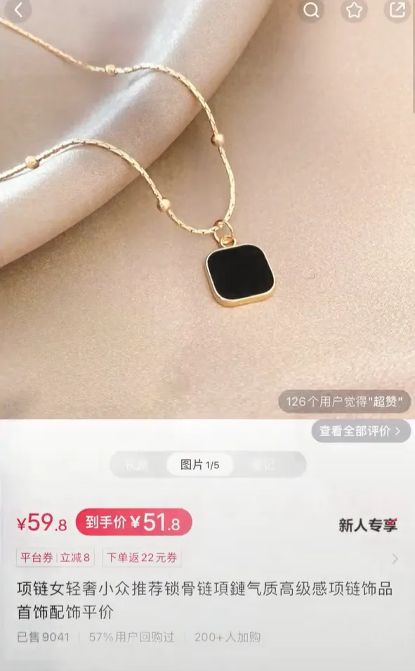 她在小红书卖的那条项链,标价 59.8 元,包邮。