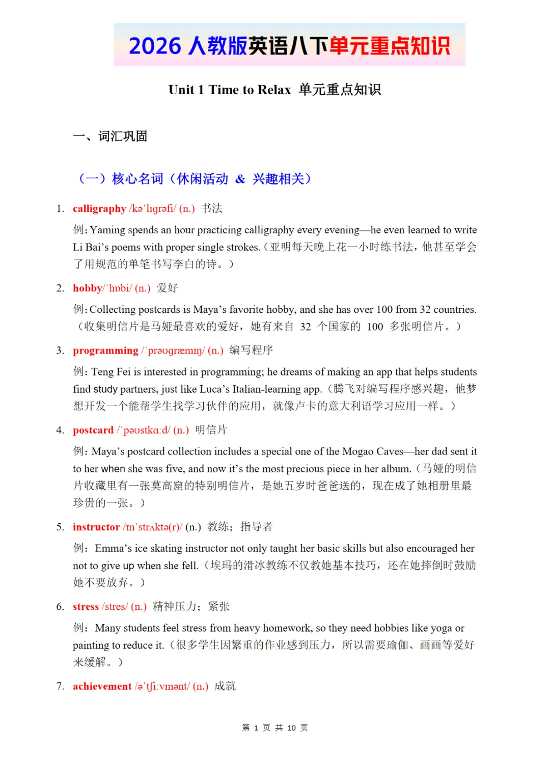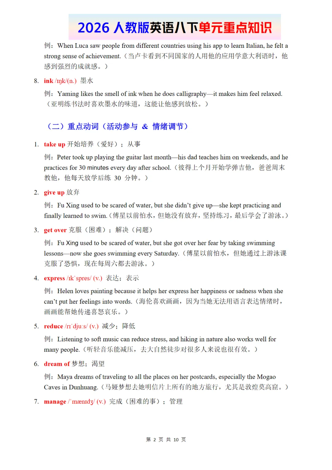 【免费下载】八年级(下)英语 Unit 1 单元重点知识《人教版》 电子版