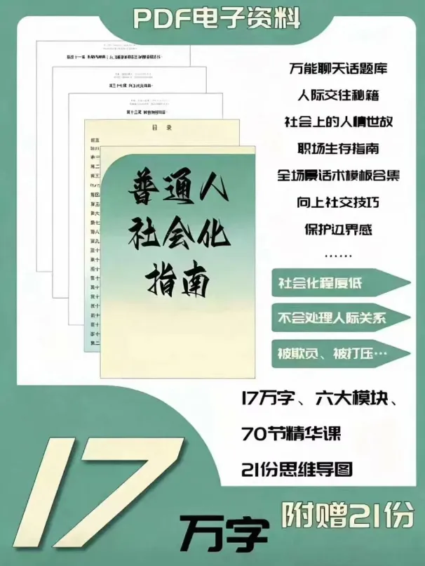 【PDF分享】《普通人社会化指南》,电子版内容超全,17万字,六大模块,65节精华课,PDF,可下载