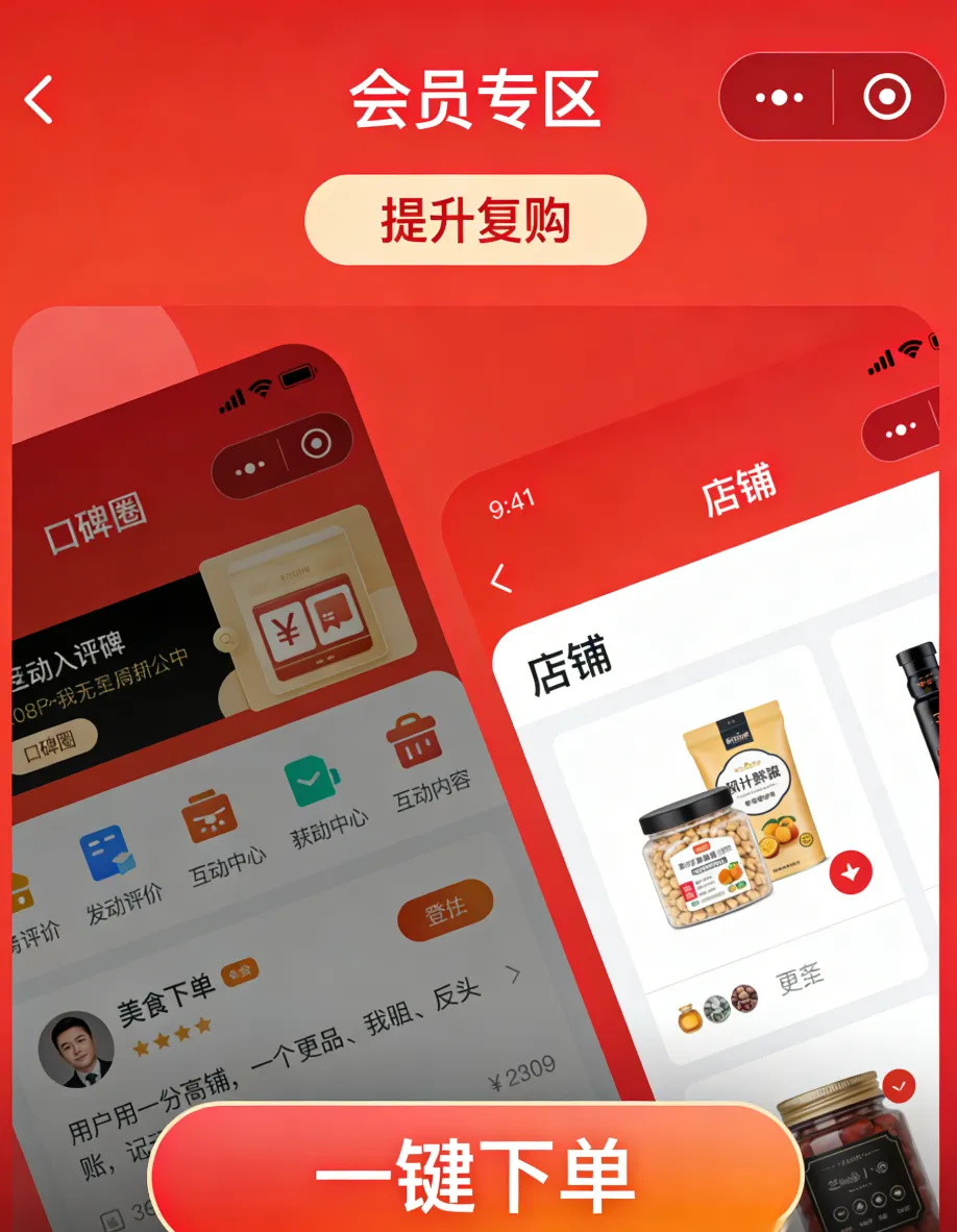 商家可设会员专区,提升老客复购率,实现看口碑、买东西一体化。