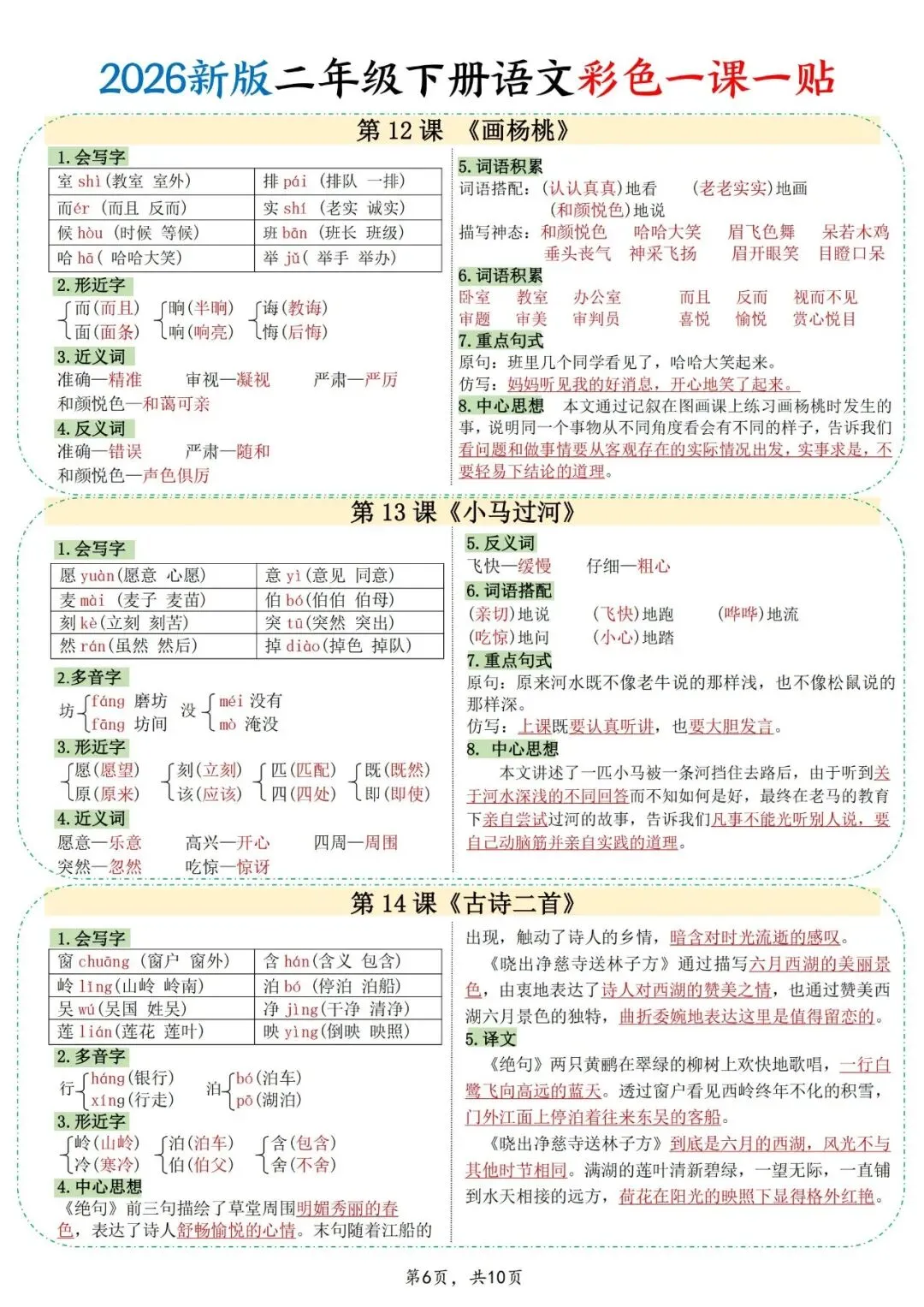 基础夯实!26新二年级下册彩色课课贴可打印电子版10页