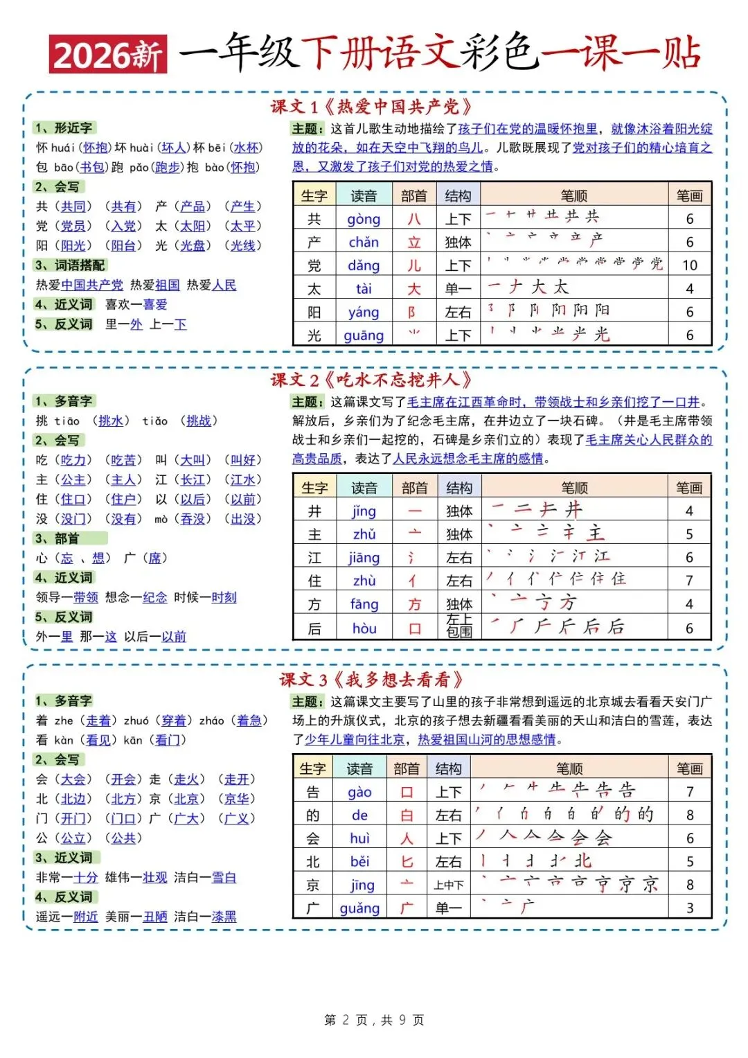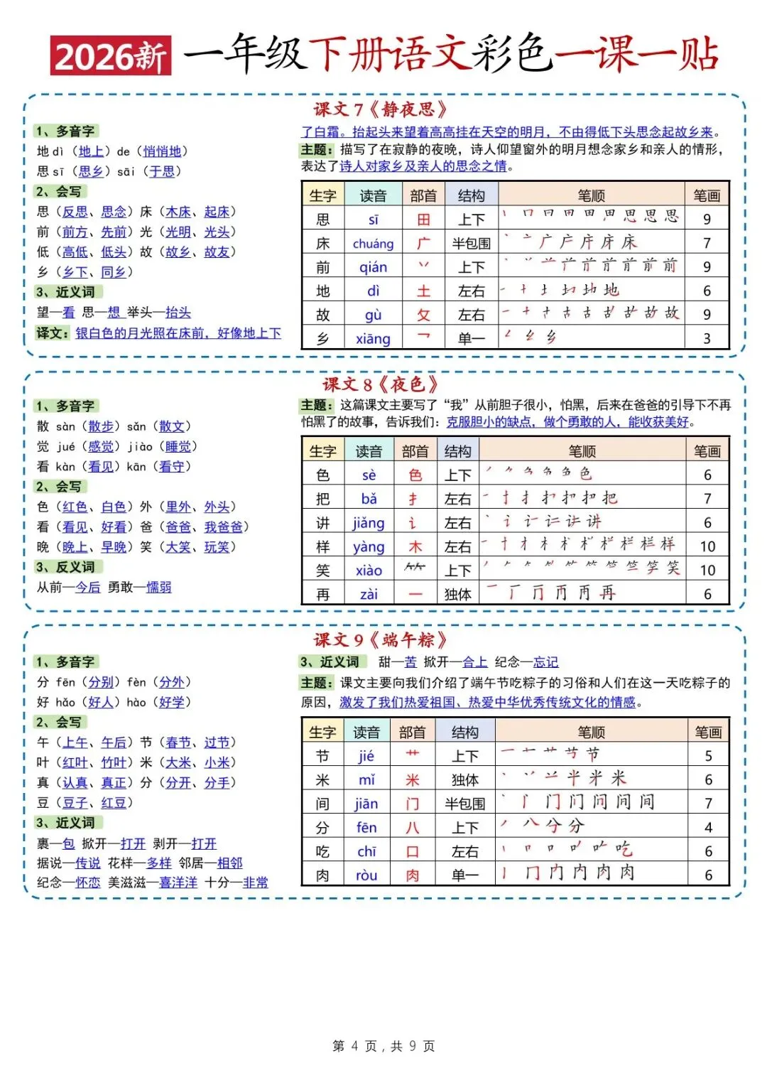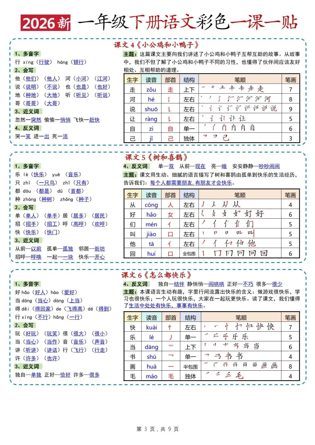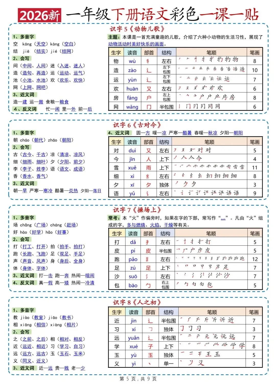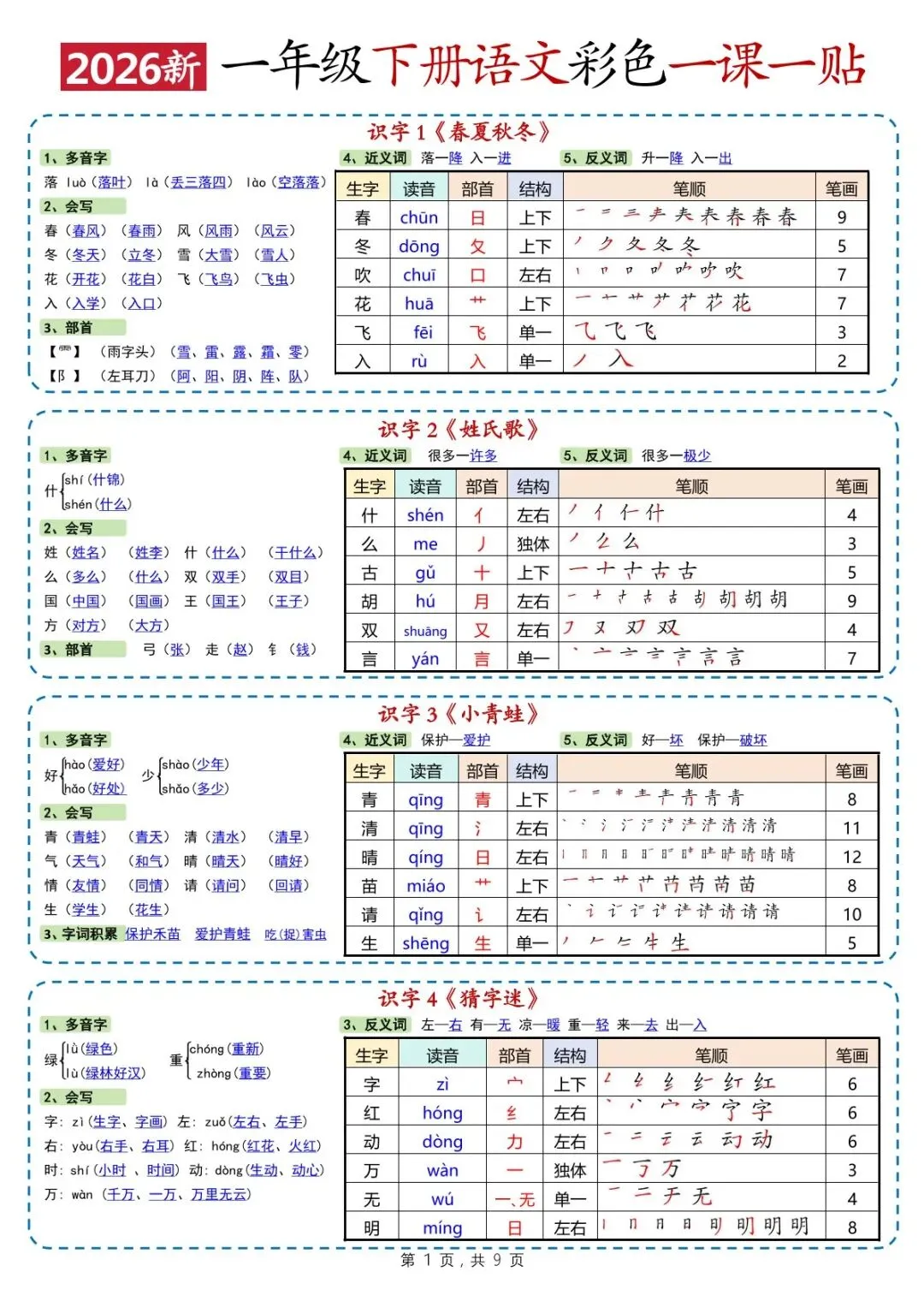 26春一年级下册语文彩色一课一贴(电子版可打印)