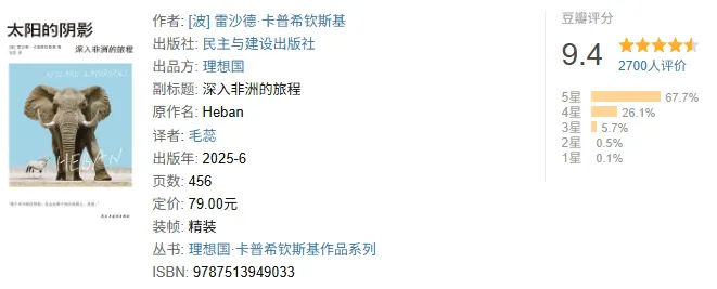 1958年,雷沙德·卡普希钦斯基作为社会主义波兰首位也是唯一一位驻外记者抵达加纳——非洲解放浪潮的最前线。此后三十多年间,他在这片“大到难以描述的”大陆上游荡,往返于数十个国家和地区,尽一切力量出现在那些被遮蔽的地点——不论是流血冲突、军事政变的现场,还是丛林中挣扎在生存线上的村落——从各个前线发回直击报道,试图为世界呈现一个真实的非洲。