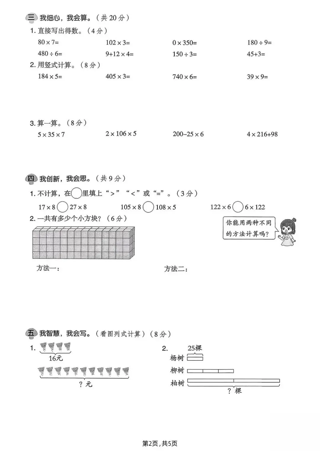 26春北师版三年级下册数学第一单元测试卷!乘法计算 + 应用题专项检测(可打印)