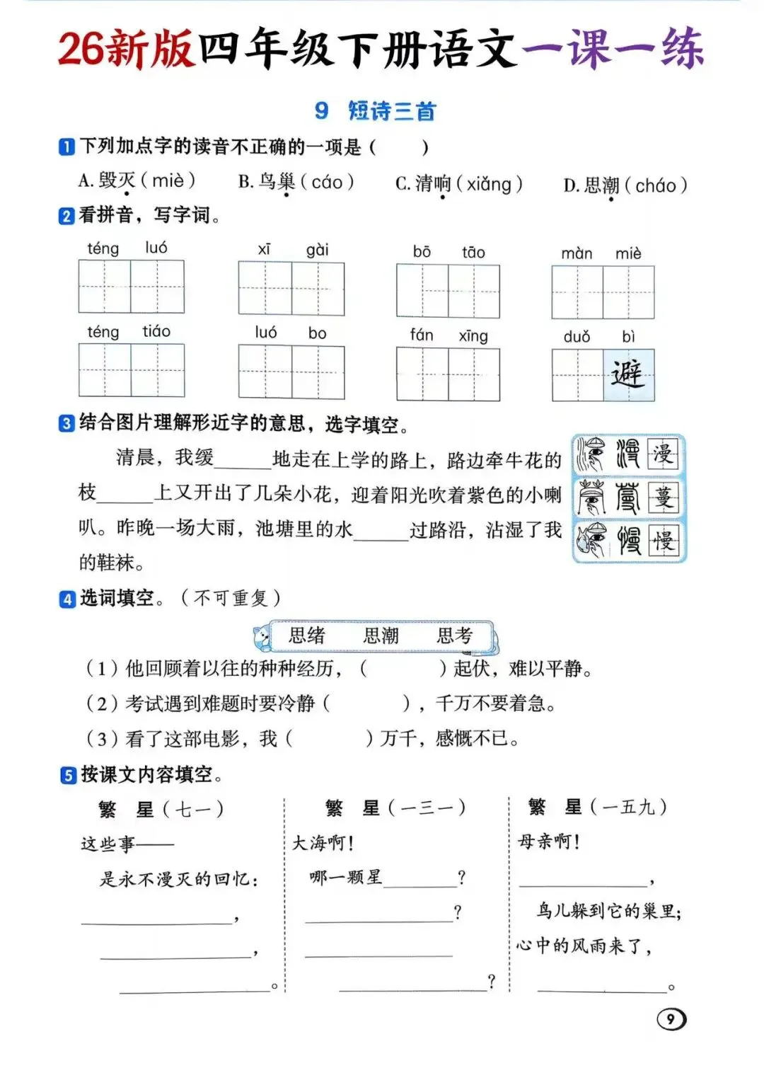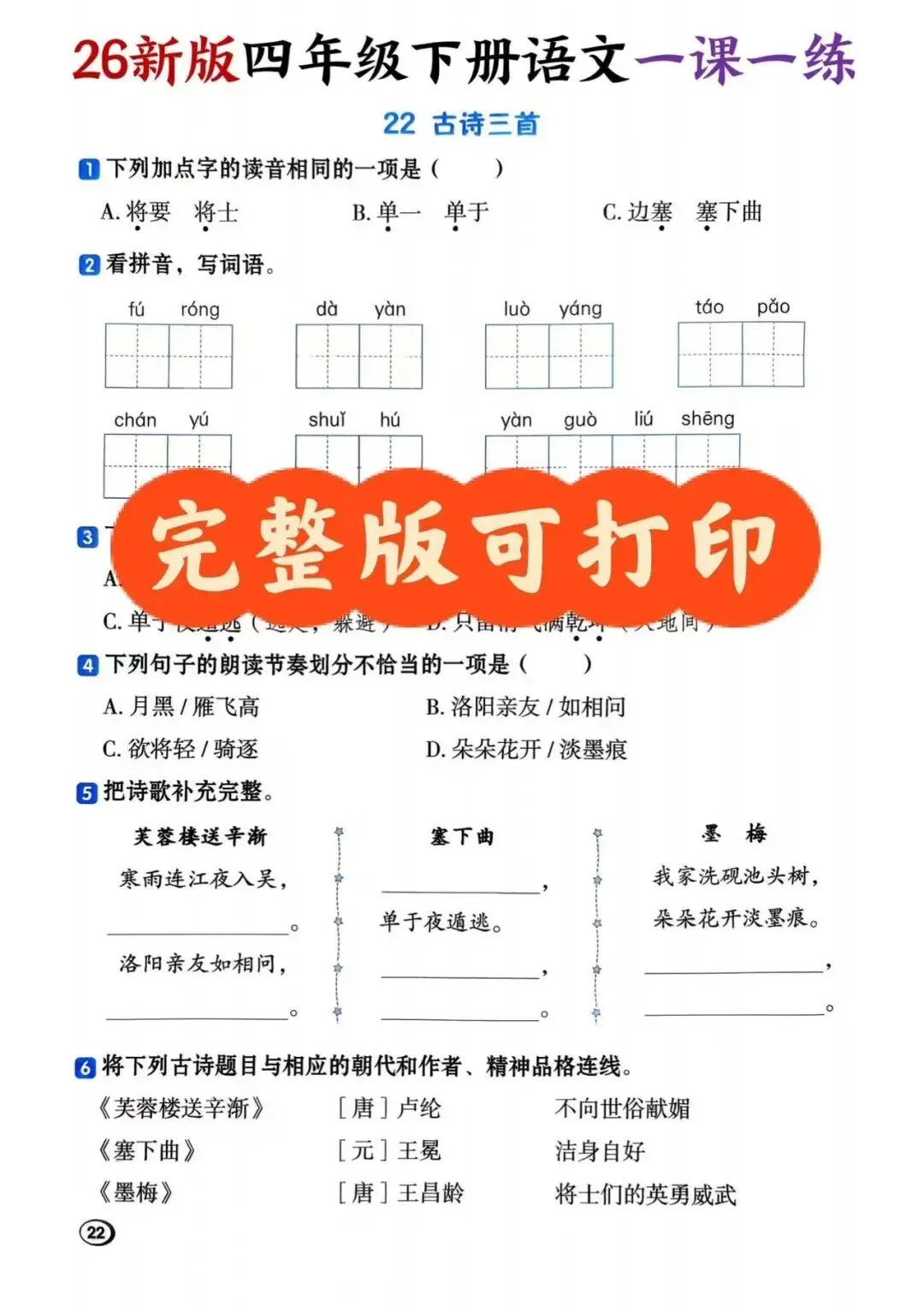 大家好我是提优补差;今天跟大家分享的是;2026春人教部编版语文四年级下册《同步课本一课一练》课课练| 单元/期中/期末测试卷(有答案)提供电子版,支持打印和下载。