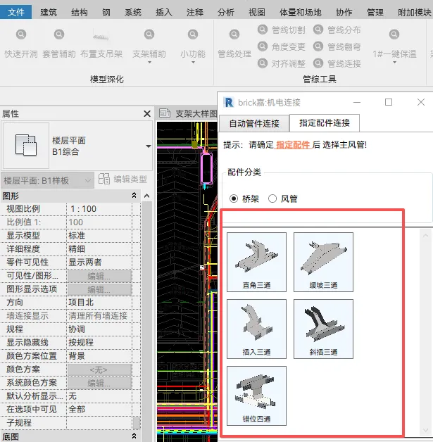 管综调整模块平替大厂插件,比他们多一些好用的小功能,比如桥架特殊配件生成、比如便捷绘制剖面等等其他细节我就不一一介绍了