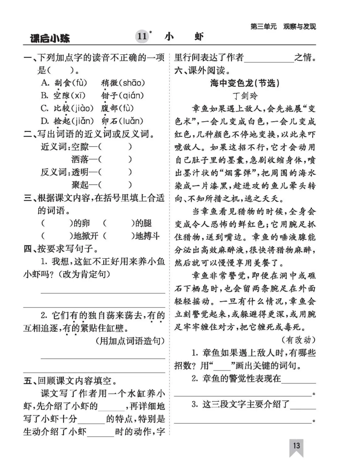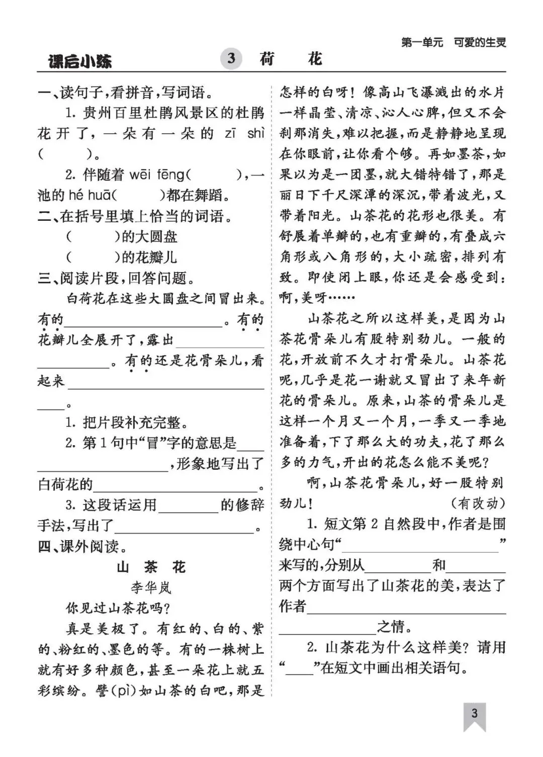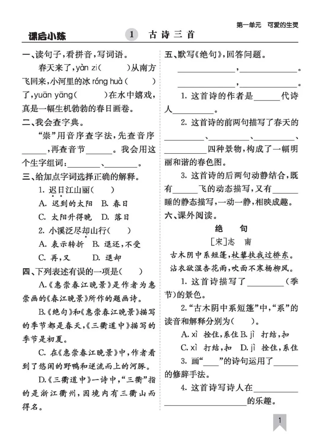 26年春三语文(下)《课时练一课一练》电子版可打印
