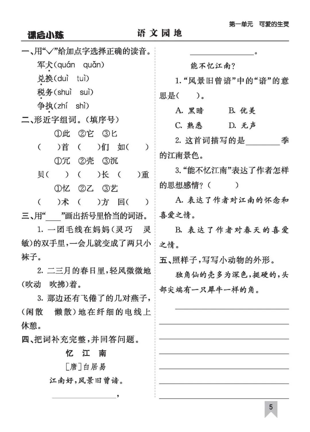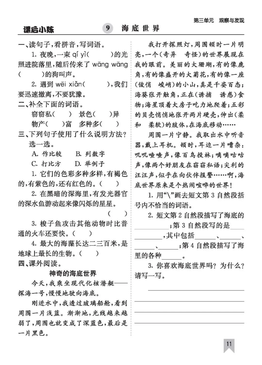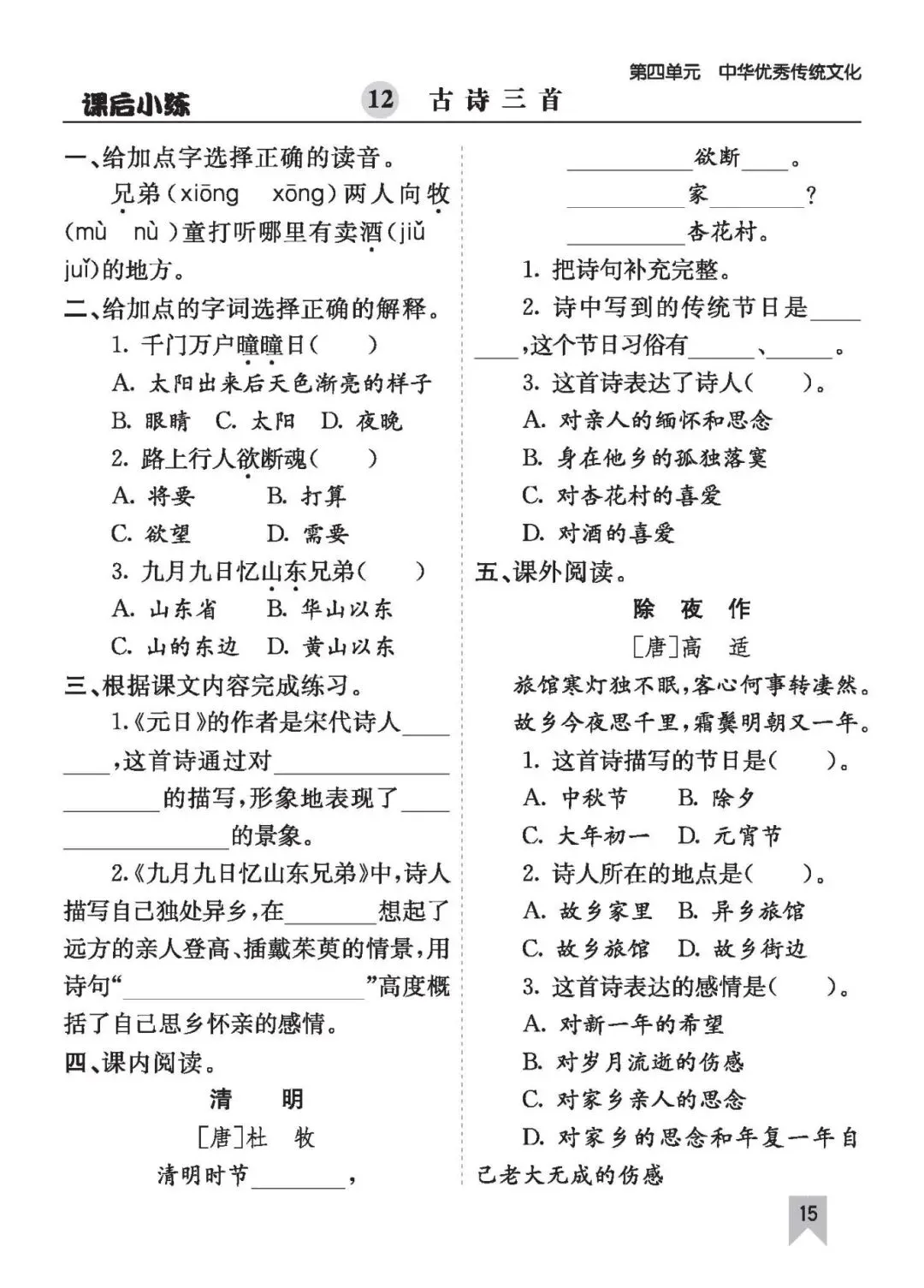 26年春三语文(下)《课时练一课一练》电子版可打印