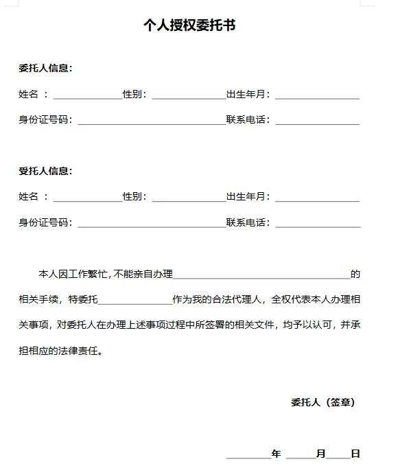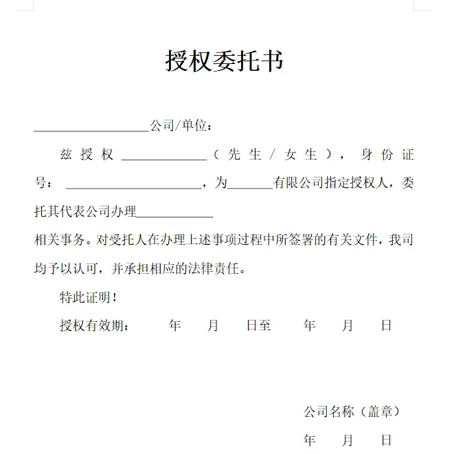 授权委托书电子模板(word电子版)可编辑可下载 授权委托书电子模板(word电子版)可编辑可下载。部分内容预览如下,完整版下载方式见文末。 详细资料信息下载地址:(手机端请长按下方二维码识别,电脑端请用手机微信扫描识别)