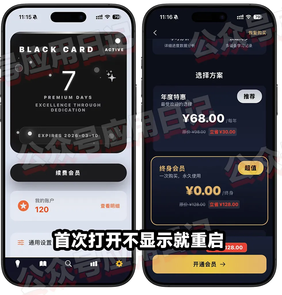 App Store 终身会员!速收!! 大家好!分享一个英语学习工具,目前可以免费获取它的终身会员,打开软件从设置点击续费会员进入内购,首次打开没有限免就重启软件,终身显示0即可免费获取! 语宙单词 一款专为四六级、考研考生打造的英语词汇学习软件,以「学习 – 复习 – 测试」科学记忆闭环为核心,依托真题词频、动态记忆曲线和游戏化学习模式,告别无效背词,同时搭载本地 + 云端双存储、零数据收集的隐私保护设计,成为备考党高效记词的实用神器。 获取方式 软件的内购为限时免费,可以满足不同学习场景的使用需求,需要的朋友速度获取,安装需要iOS17.0及以上! ① CS致敬中文版!App Store 国区也可安装 ② iOS26.4系统更新!加载Bug终于解决 ③¥148终身买断,速收!