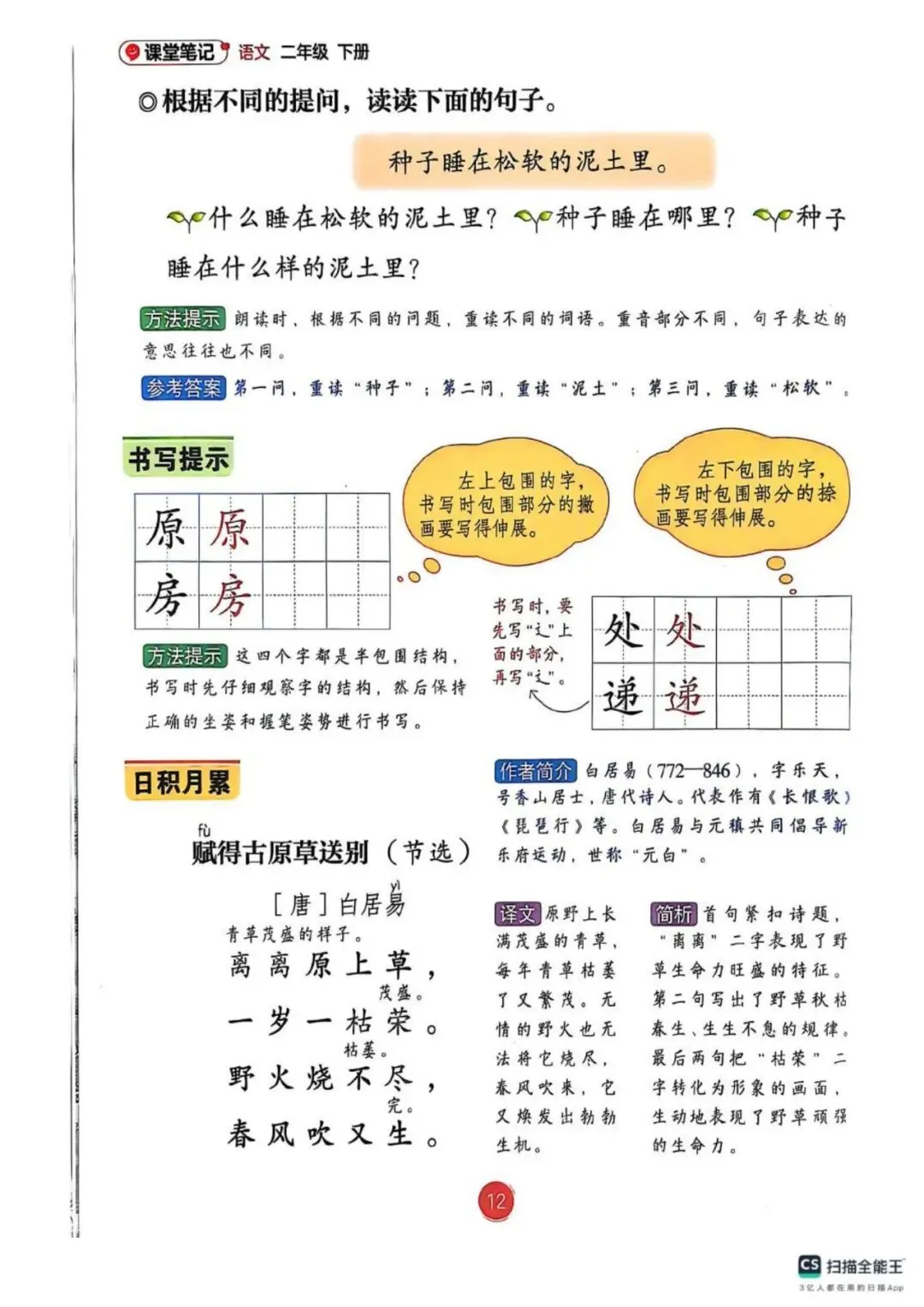 二年级下册语文课堂笔记 完整高清电子版可打印