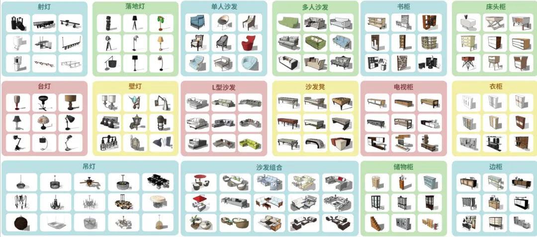 几万个高质量组件(家具、植物、人物、车辆等)。
