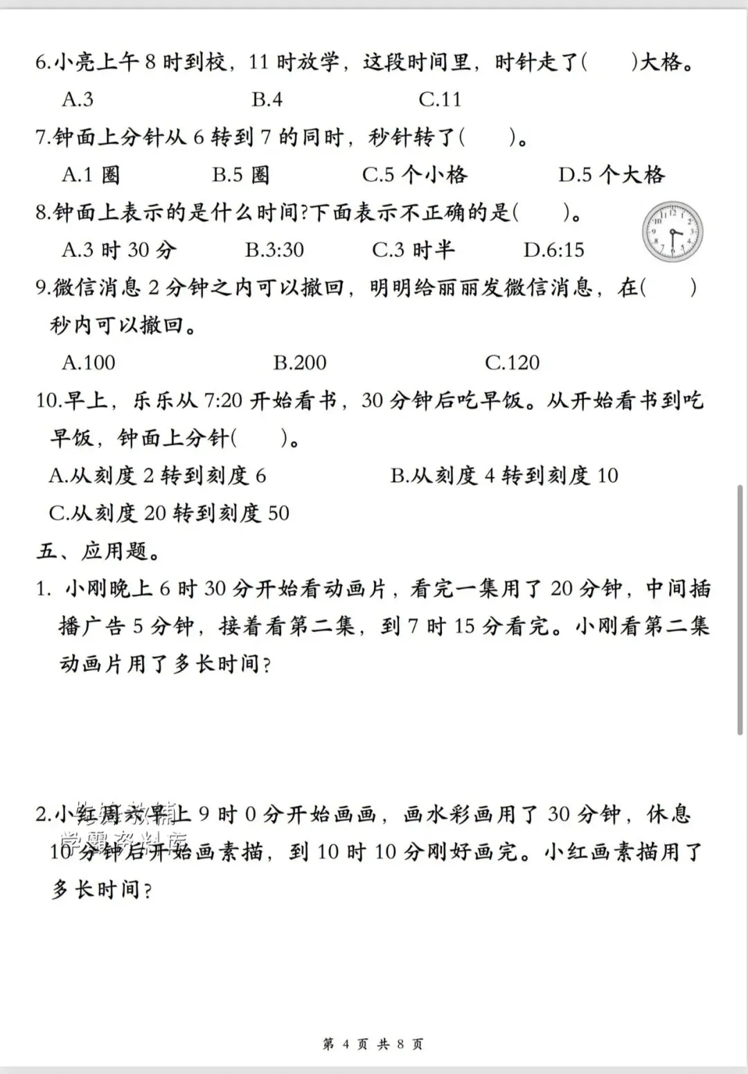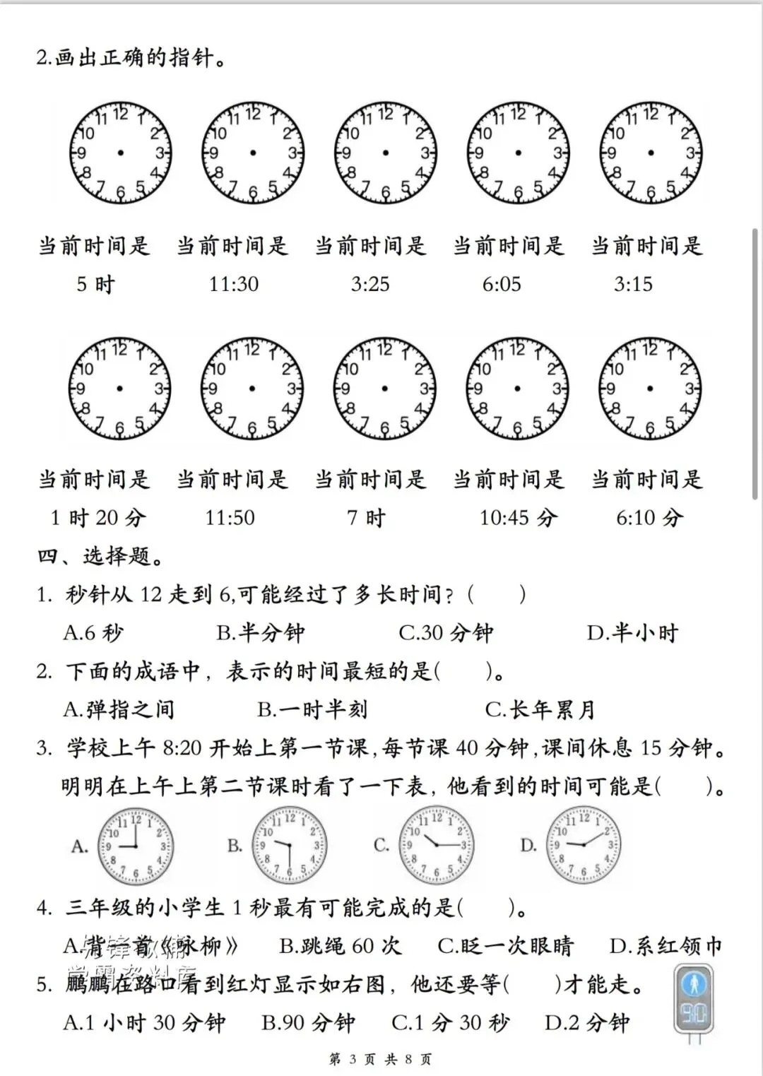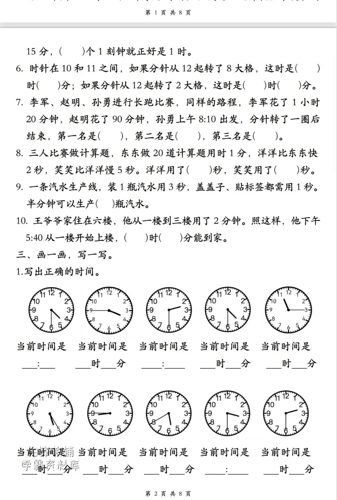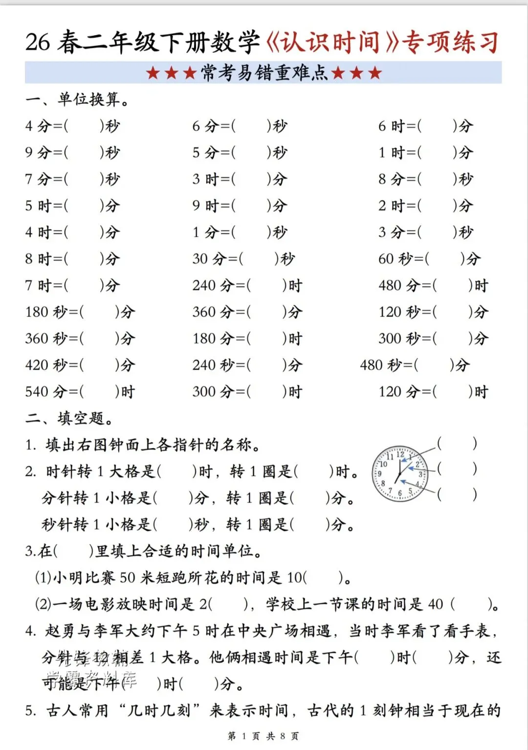 二年级下册数学《认识时间》专项练习(电子版可打印)