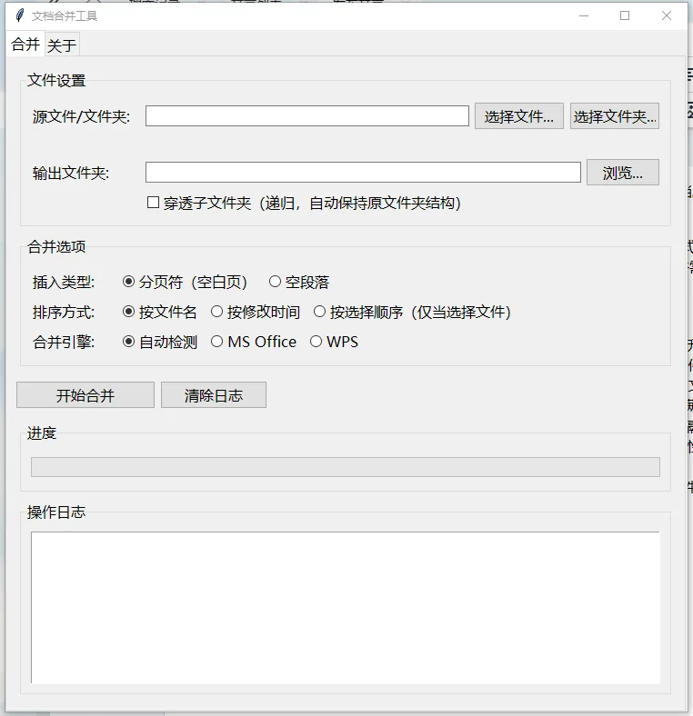 支持自动检测、MS Office、WPS三种合并引擎,确保兼容性 - 拖拽操作支持