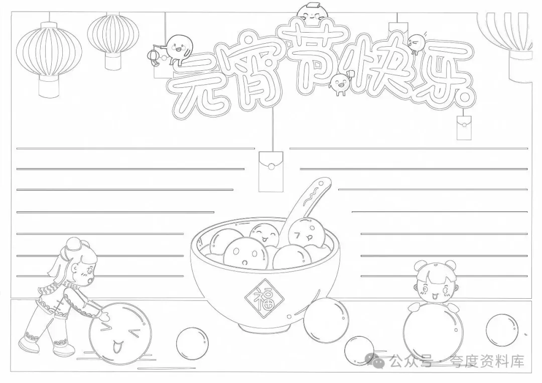 元宵节手抄报模板53套,可编辑可打印 可打印 A3/A4/4K/8K/16K/32K 等尺寸内容可修改、线稿可涂色款式简约,容易描线,容易上色每套小报均含彩图 + 线稿。 部分内容预览如下,完整版下载方式见文末。 详细资料信息下载地址:(手机端请长按下方二维码识别,电脑端请用手机微信扫描识别)
