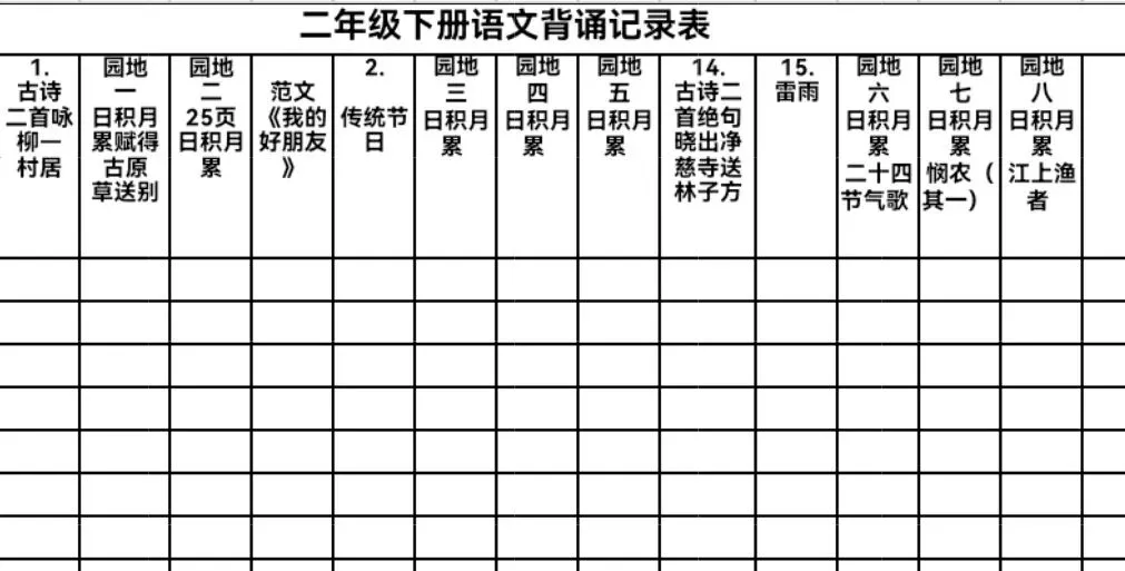 二年级语文下册背诵记录表(可复制,可打印)快收藏好!