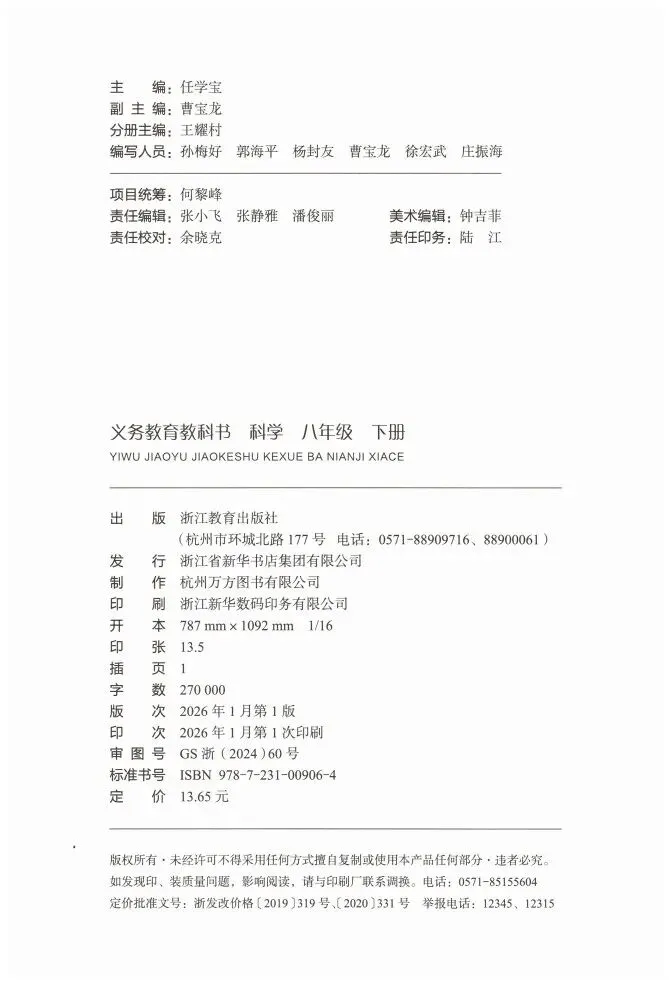 2026浙教版八下《科学》教材电子版+下载