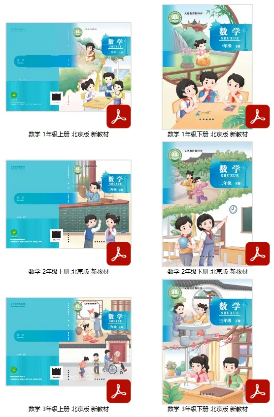 小学数学北京版一年级、二年级、三年级上下册新教材正式版电子课本,下载方式见文末。
