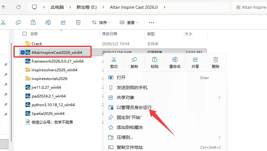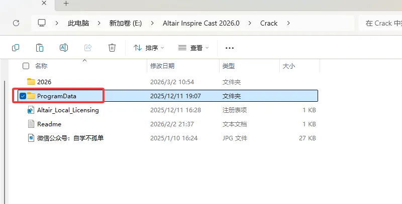 15、回到解压安装包Crack文件夹,复制2026文件夹。
