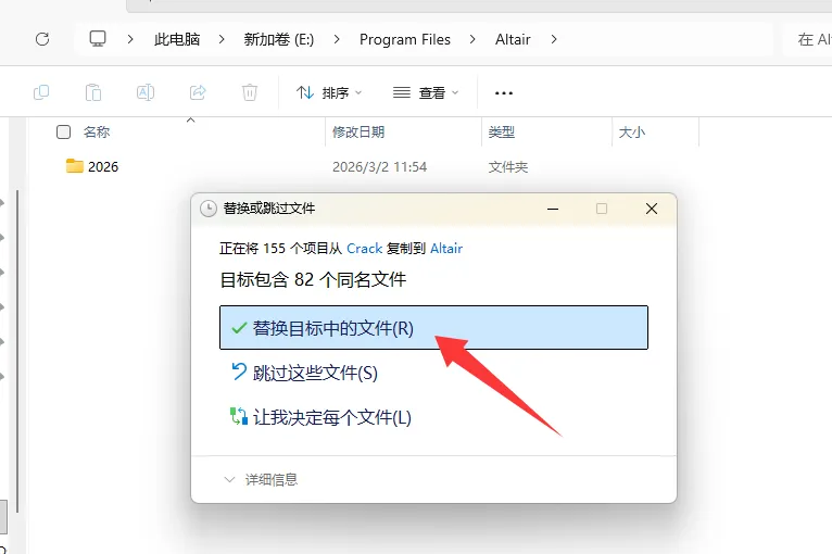 17、找到软件安装路径,粘贴前面复制的2026文件夹,选择替换目标中的文件。