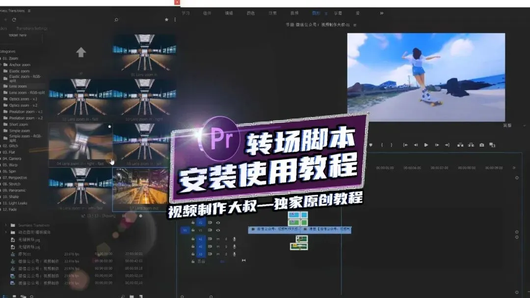 本期大叔带来一款超强大且好用的PR转场插件脚本,