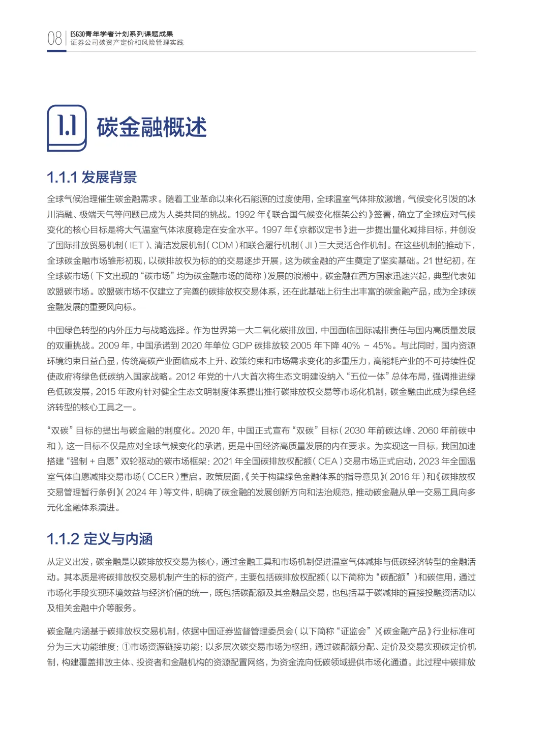 该报告的研究不仅为证券公司参与碳金融业务提供了方法论支持,也为中国碳金融市场的制度完善与机制创新贡献了智力成果。通过理论与实践结合,报告提出的政策建议有助于加快碳金融市场立法进程、完善基础设施、培育市场主体、构建适配风控体系,为推动“双碳”目标实现及全球气候治理提供了中国视角与路径参考。