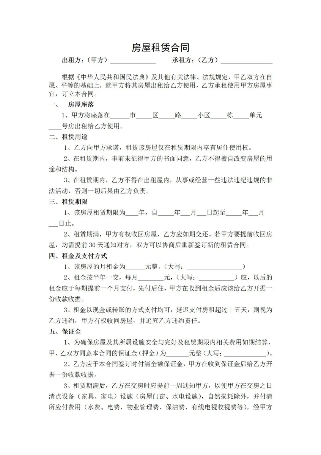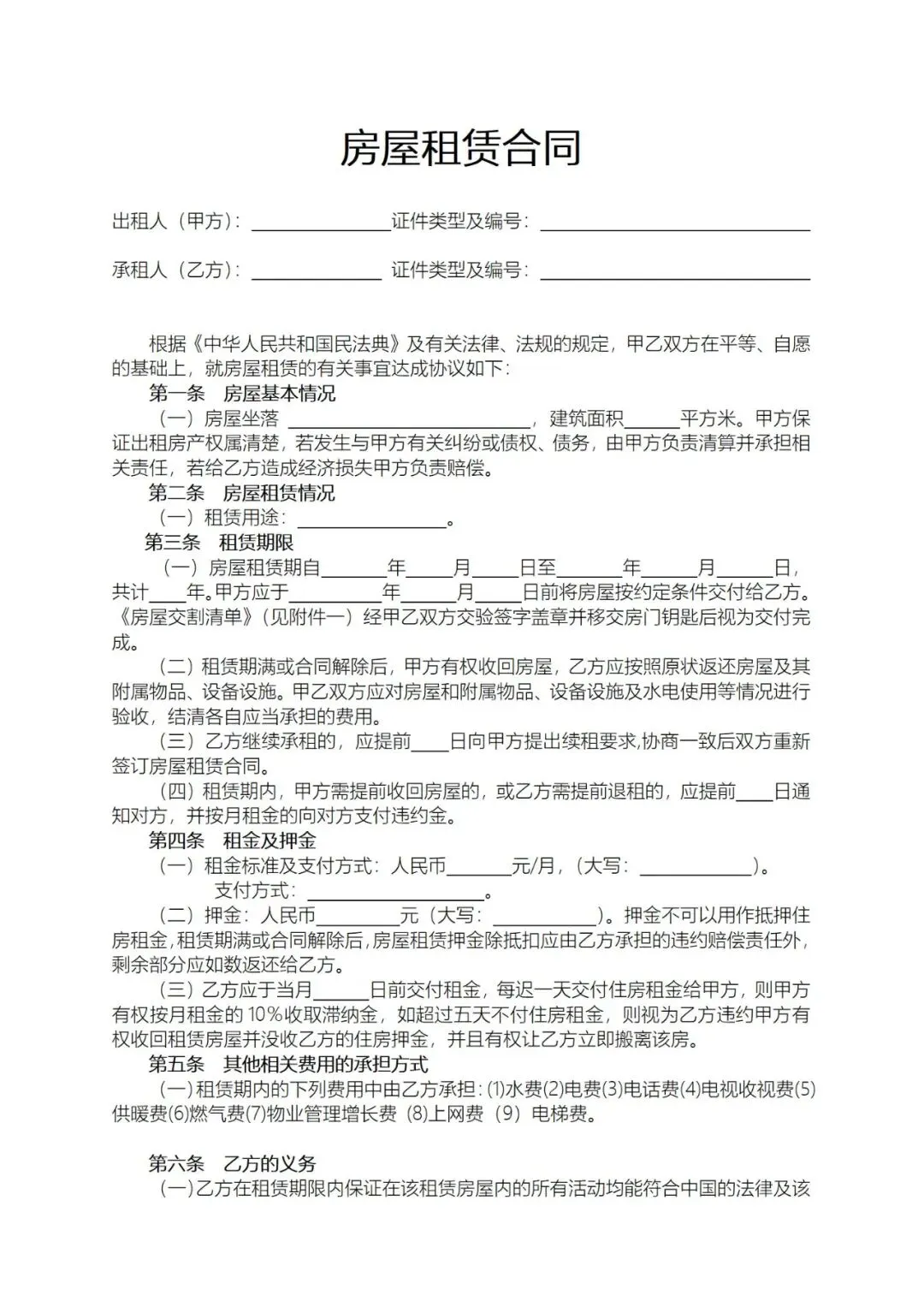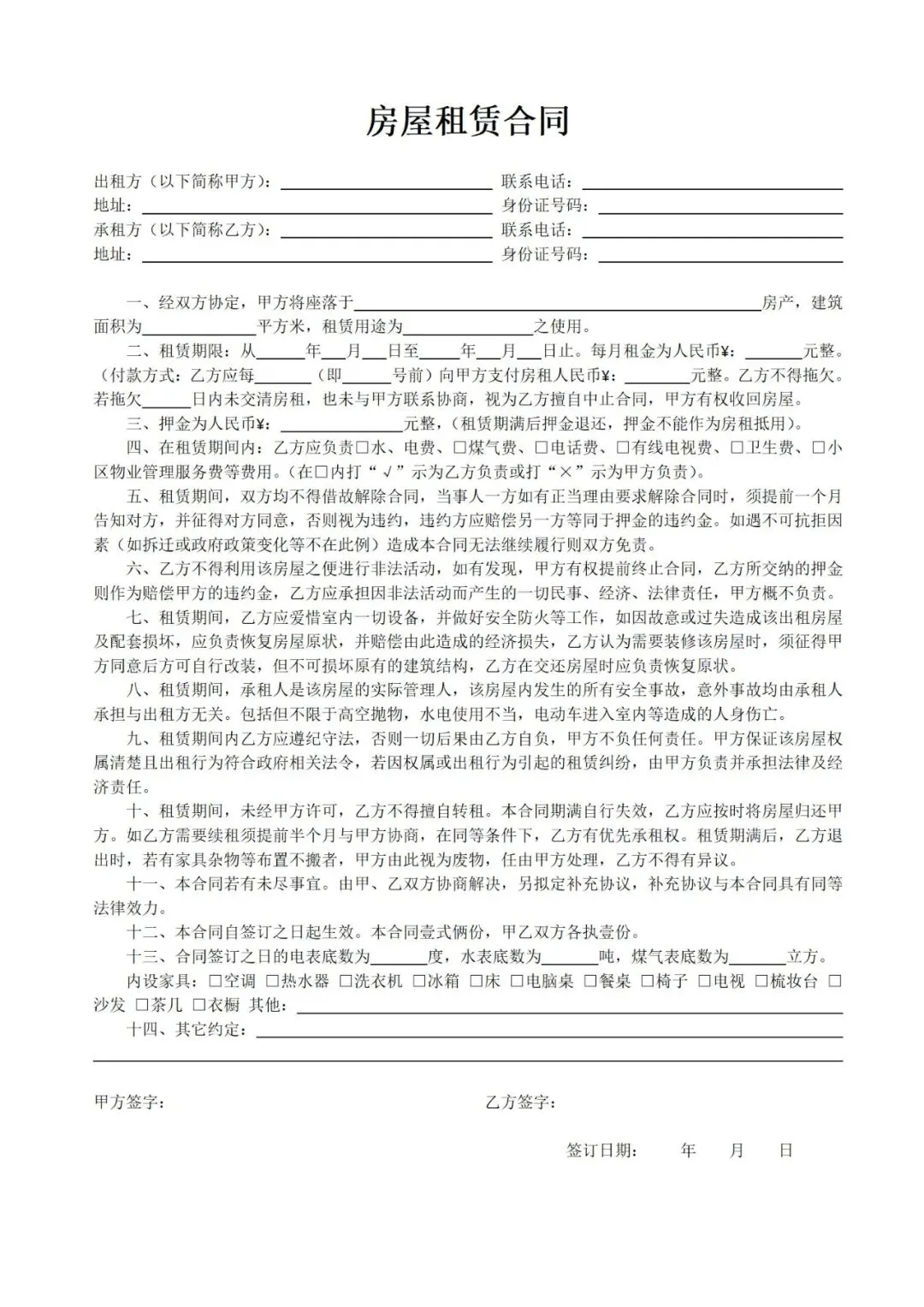2026新版《房屋租赁合同模板》(电子版免费下载)