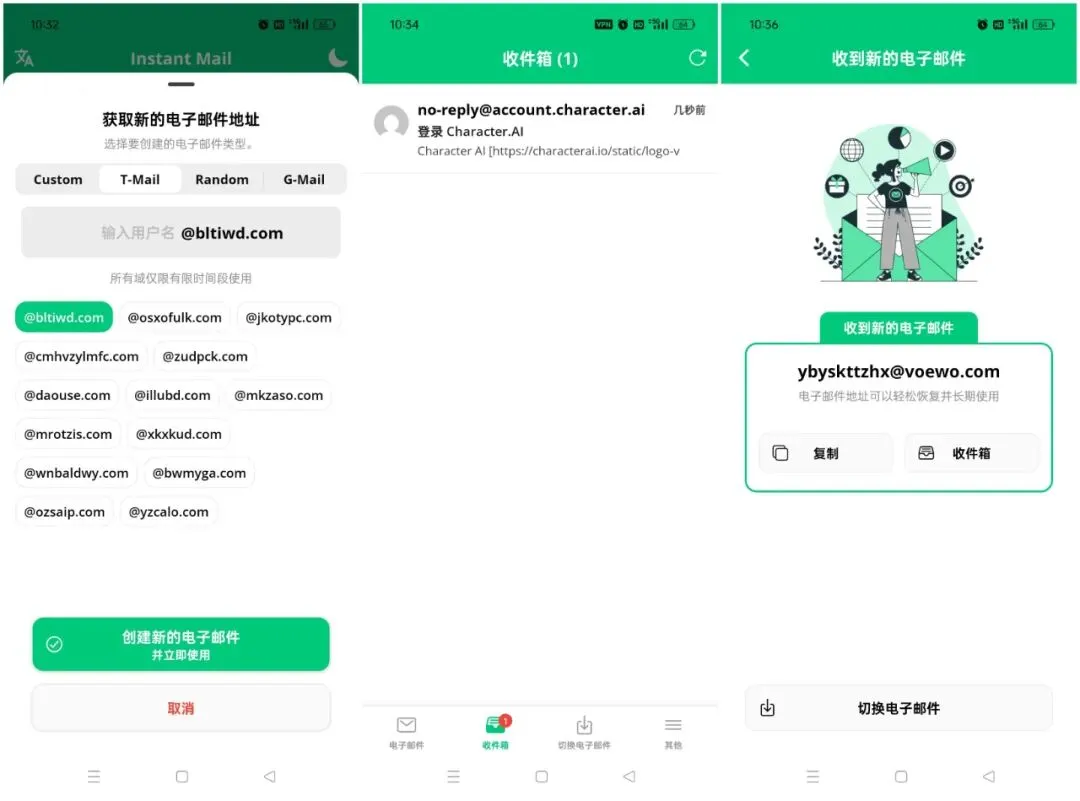 这是一款专为需要临时邮箱的用户设计的强大应用程序。它允许用户创建一次性邮箱地址,非常适合用于注册敏感网站或避免垃圾邮件。通过这款App,用户可以轻松管理多个邮箱账号,快速查看、发送和删除邮件。此外,Instant Mail还提供了智能分类功能以及重要邮件提醒,帮助用户更高效地组织和管理自己的邮箱。无论是处理日常邮件还是保护个人隐私,都能提供全面的支持。