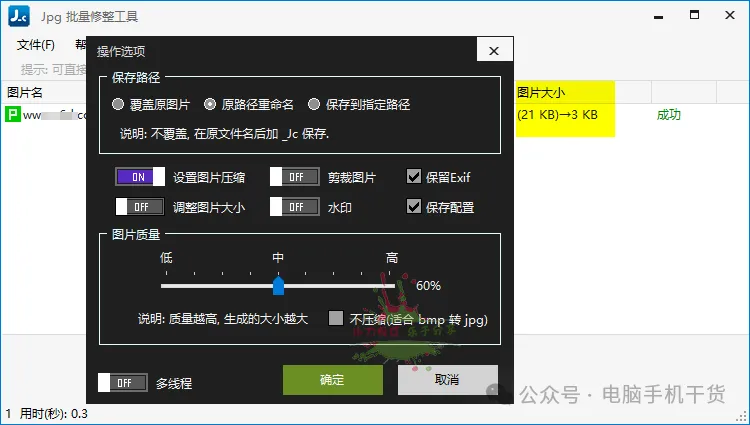 这是一款十年前国产的免费图片压缩利器JPG-C,仅有几百k大小,却可以根据自定的压缩级别对jpg/jpeg/bmp/png图片无损压缩减肥。JPG-C不仅支持单张图片,而且支持直接加载文件夹,在中等压缩比的情况下,图片质量几乎没有差别。