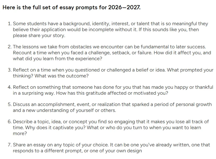 27Fall注意!Common App文书题目正式发布,热门选题+写作思路全解析