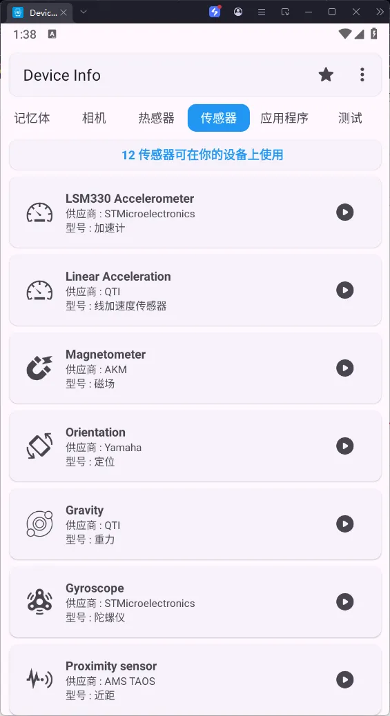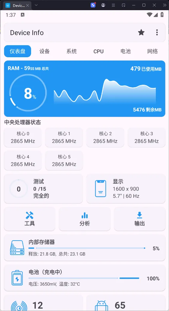 是一款Google Play商店评分非常不错的手机硬件和系统信息检测应用,安卓设备硬件检测工具,可以全面查看安卓设备的各种详细状态,功能包括:硬件监测仪表盘、设备型号,CPU处理器,Android系统版本、电池、屏幕、网络、相机、传感器、热感器、应用程序、自动和单独测试各项硬件功能等。