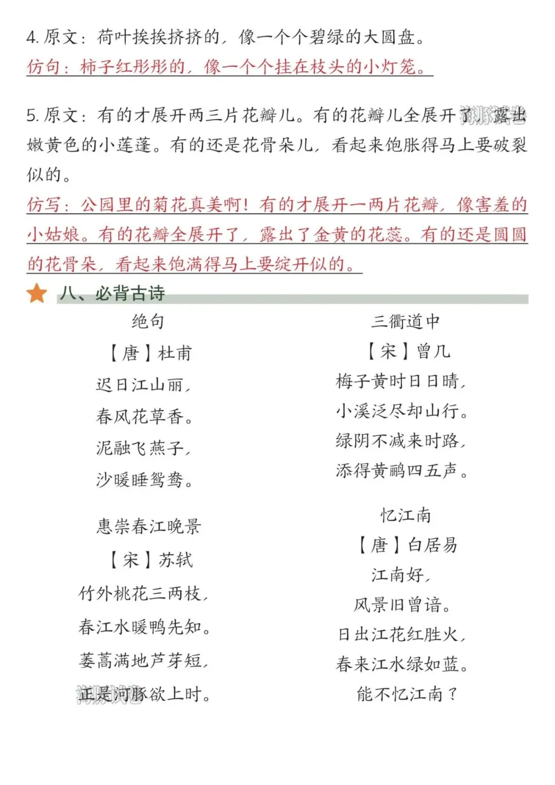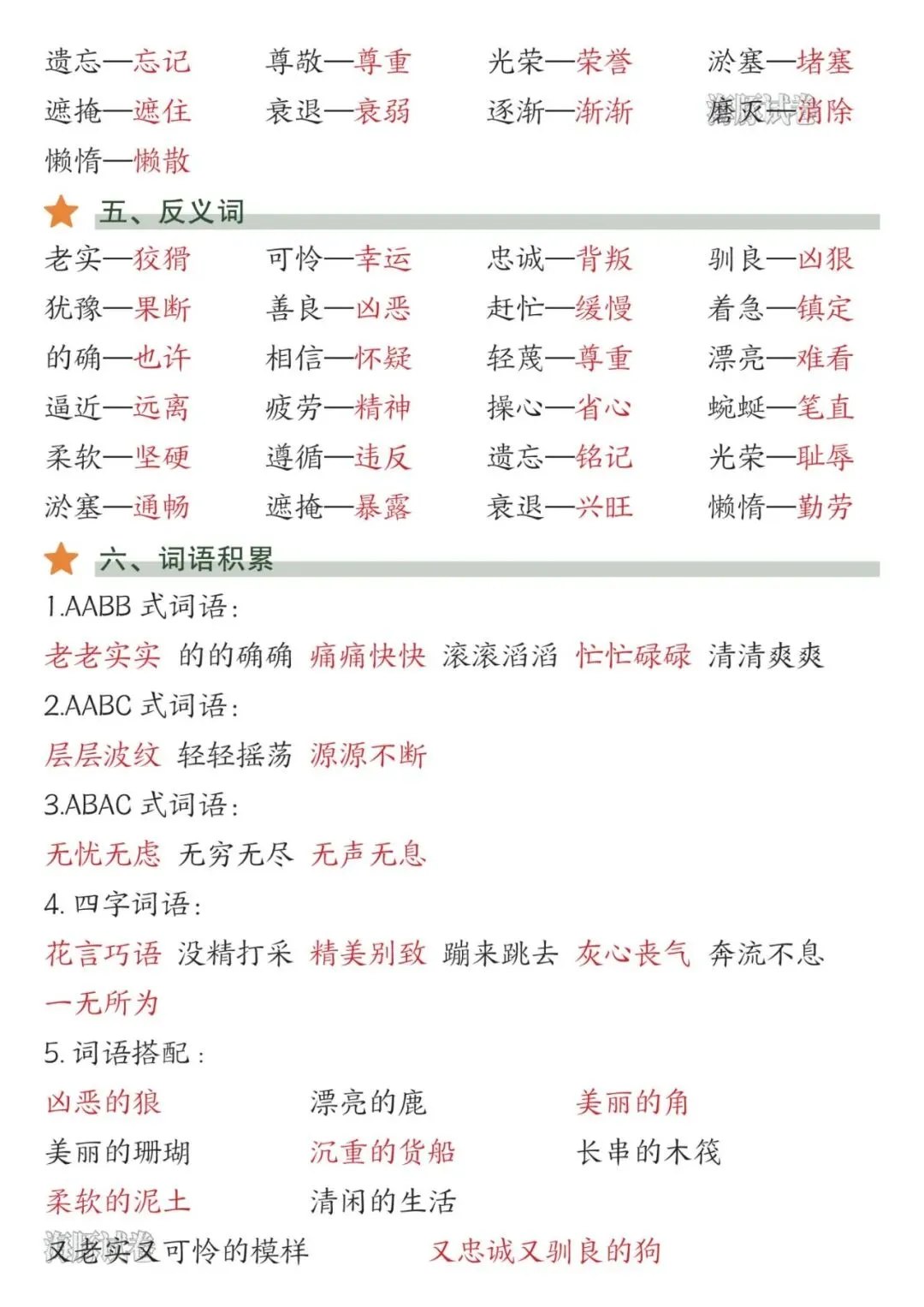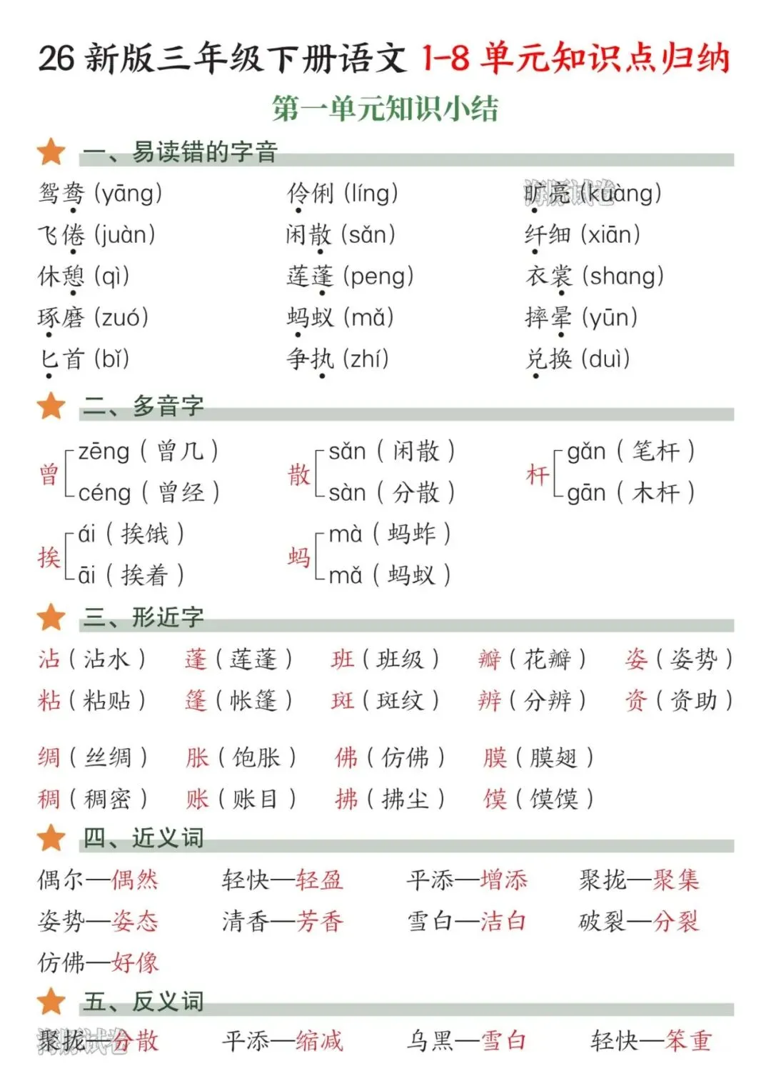 26春三年级下册语文1-8单元知识清单,电子版可打印