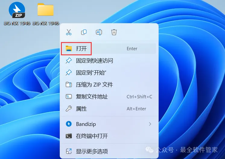 30、回到桌面,右键桌面上的【NX软件图标】,点击【打开】