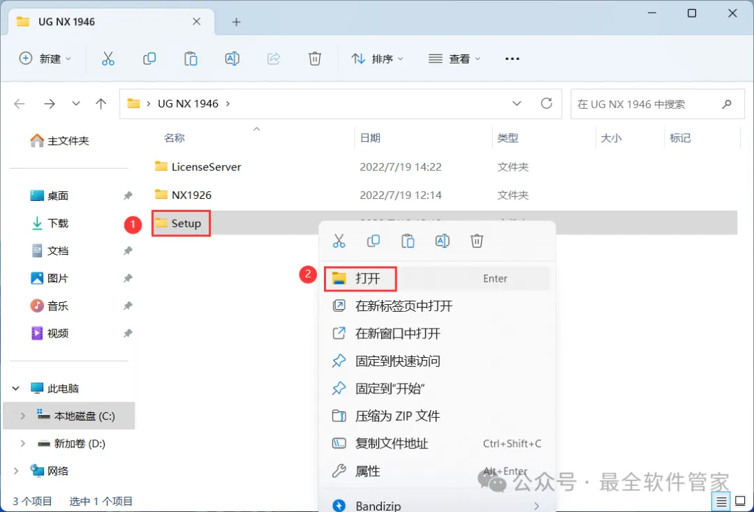 8、回到UG NX 1946文件夹,找到【Setup】文件夹,右键【打开】它