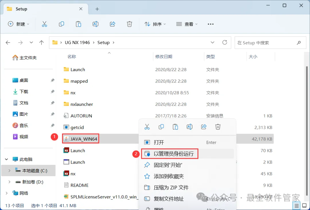 6、找到【安装NX许可服务】应用程序,右键选择【以管理员身份运行】它