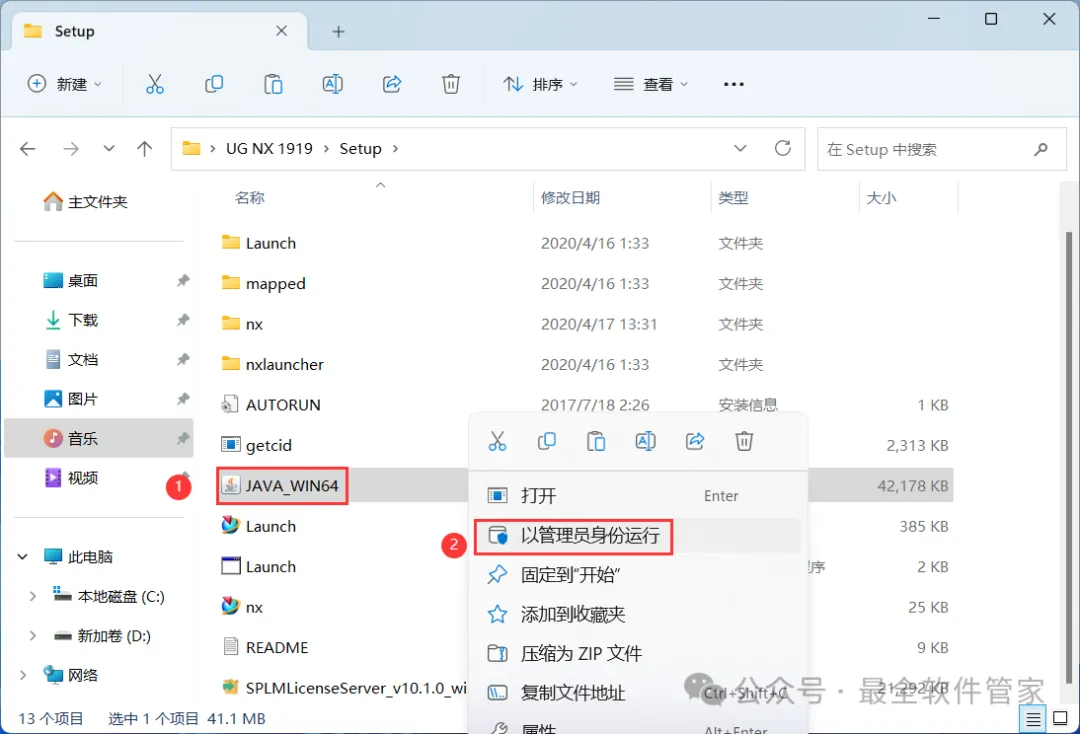 6、找到【安装NX许可服务】应用程序,右键选择【以管理员身份运行】它