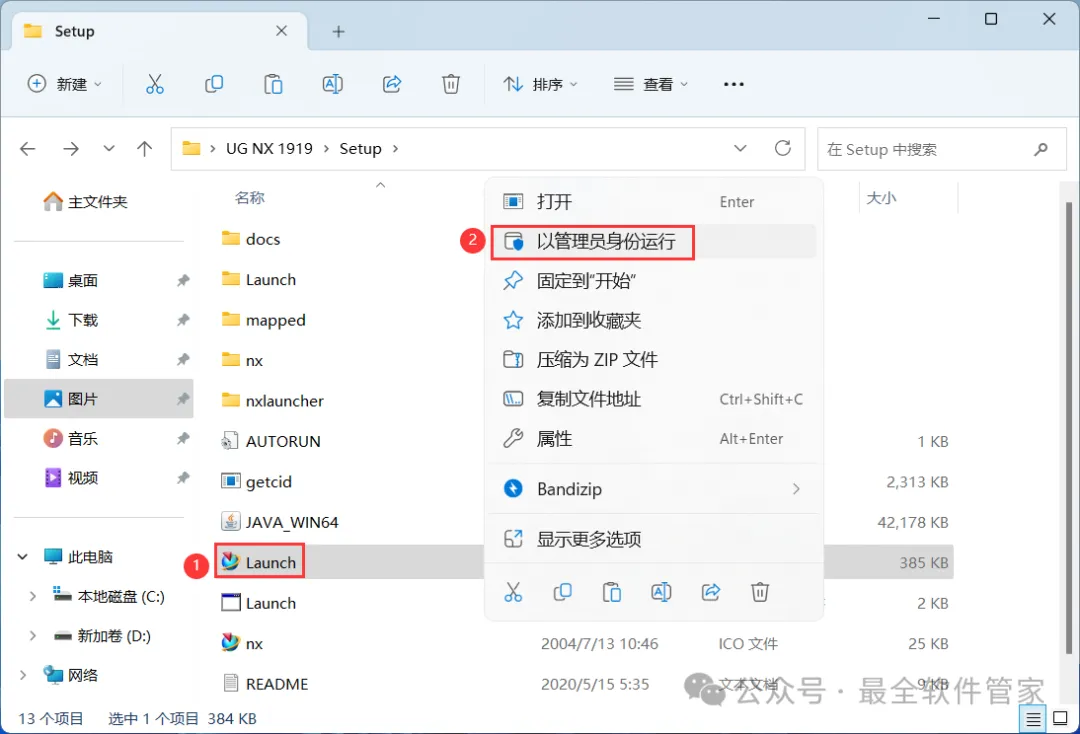 13、回到Setup文件夹,找到【Launch】应用程序,右键选择【以管理员身份运行】它