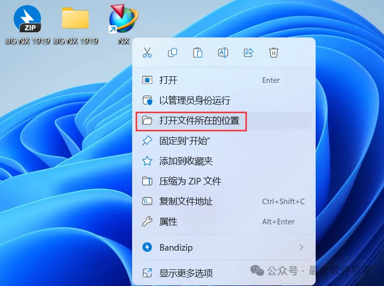 26、右键桌面上的【NX软件图标】,点击【打开文件所在的位置】