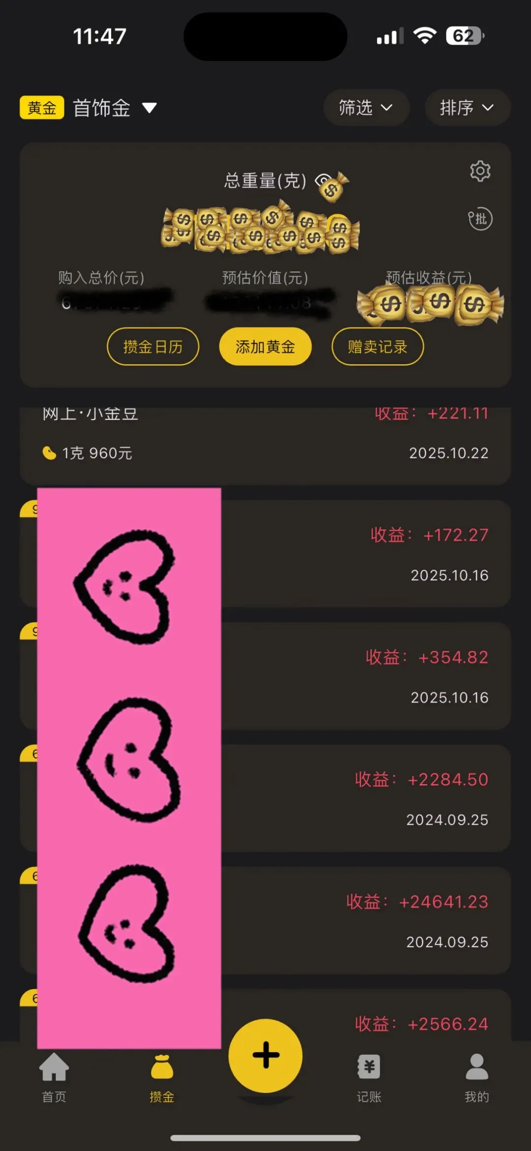 这个可以看实时黄金价格、白银价格、还能记录每日收支(不过我没用这个)我都是用来记录买过的黄金,什么时候买的黄金,现在增值多少都给你写得明明白白!